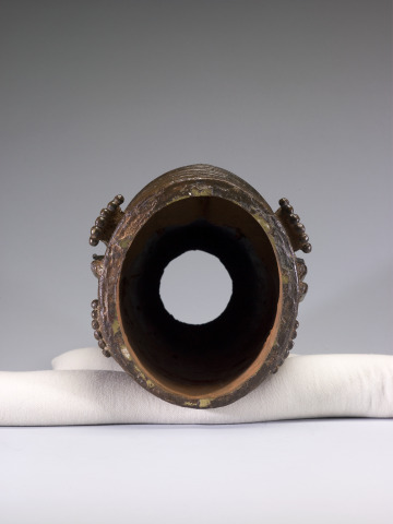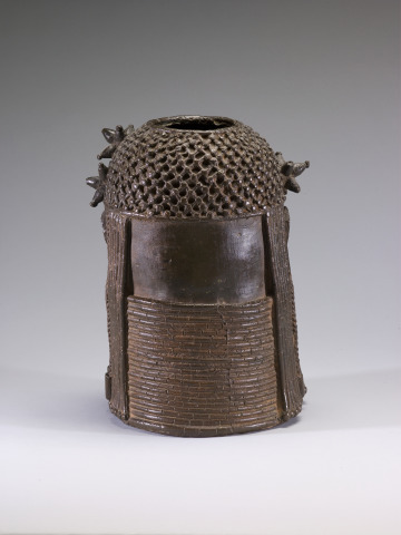The copper alloy material comprising this sculpture originated from manillas, currency pieces Portuguese traders imported to the area after 1489.
