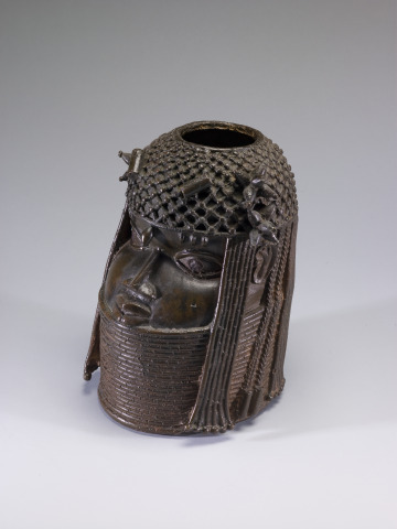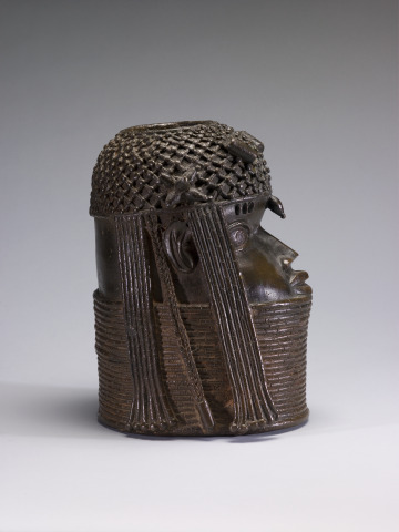 Benin Kingdom art in European and American museum collections largely originates from a raid on Benin City in 1897. The British military burned the palace, confiscated the royal arts, and exiled the king (oba), Oba Ovonramwen. Much of this art then entered the market. The Benin Kingdom was reinstated in 1914 under British colonial rule until Nigeria’s independence in 1960. The current oba is Ewuare II.