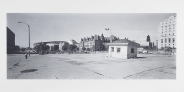 Untitled #2 (St. Louis) is one of a series of photographs Catherine Opie shot in St. Louis: it presents an urban landscape, with an array of buildings from different time periods and a mixture of architectural styles. While in St. Louis, Opie found herself drawn to the historic development of the city at the time of the 1904 World's Fair. Her photographs, shot in and around downtown and Forest Park, capture the present conditions of the city through the visual language of the past by using the panoramic format that was frequently employed to document the American landscape at the turn of the 20th century. While St. Louis may appear less majestic now than it did a century ago, Opie's imagery nonetheless highlights the beauty she sees in urban development and the potential for the preservation, restoration, and rejuvenation of the city. She has described her process as "wander[ing] around with my camera to describe my relationship to the world and where I live."