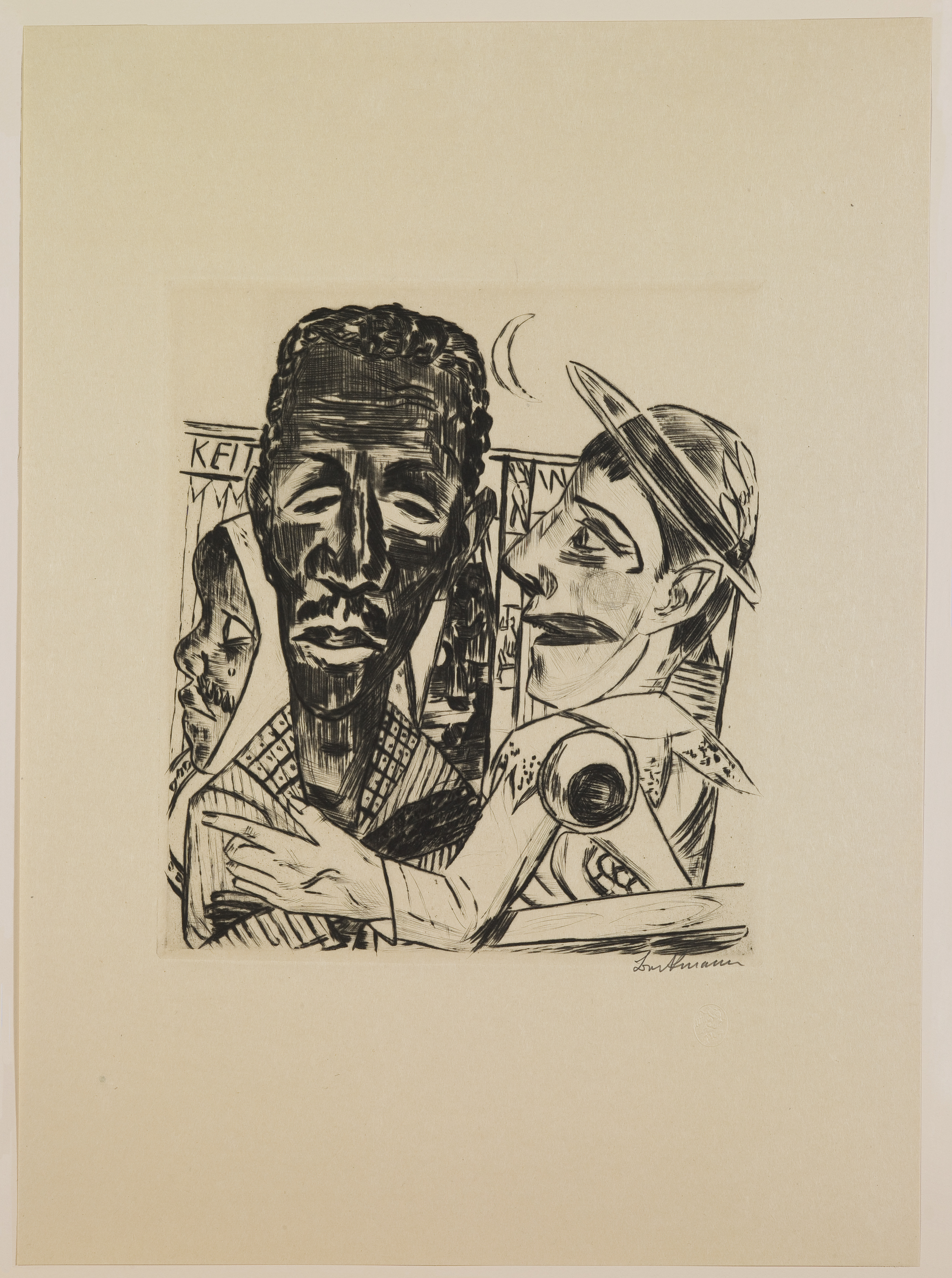 [1] In a letter dated November 16, 2001 to Francesca Consagra at the Saint Louis Art Museum, Allan Frumkin indicates that he acquired the core of his Beckmann collection from I.B. Neumann [SLAM document files]. Included on the Frumkin Collection list dated November 17, 2001, along with the above-mentioned letter are seven drypoints from the "Annual Fair" portfolio, which Frumkin annotates as having been purchased from Neumann. This impression is not one of the drypoints listed. Frumkin mentions, however, that he did not have a master list of the prints and that there were probably omissions, since he was forced to work from memory. It is likely that he acquired this proof at the same time as the other prints in the portfolio.