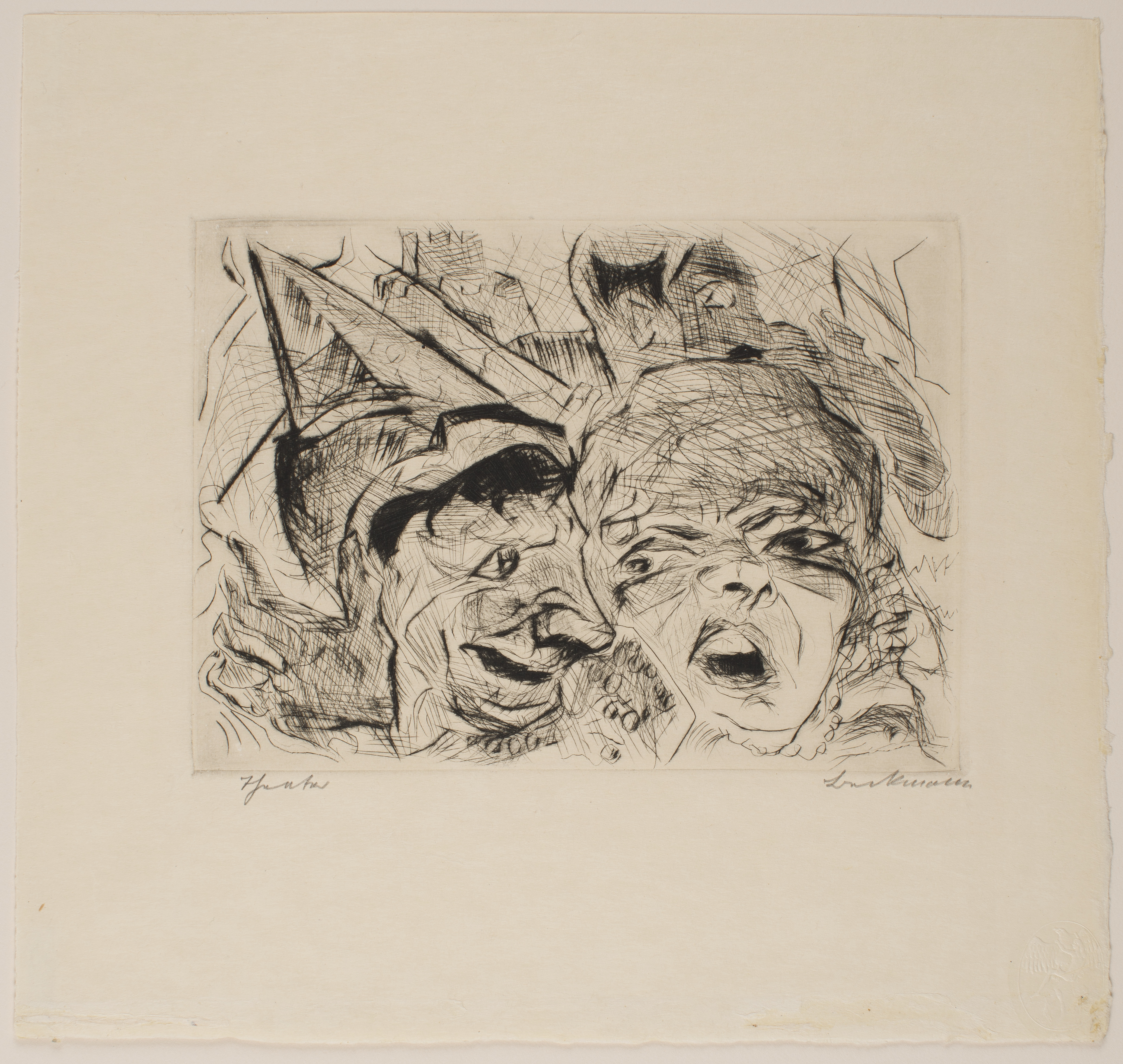 [1] In a letter dated November 16, 2001 to Francesca Consagra at the Saint Louis Art Museum, Allan Frumkin indicates that while he acquired the core of his Beckmann collection from the dealer and gallery owner I.B. Neumann during the late fifties, he also purchased some prints after the late fifties at auction [SLAM document files]. Included on the Frumkin Collection list that was faxed on November 17, 2001 together with the above-mentioned letter are six drypoints from the "Faces" portfolio, which Frumkin annotates as having been purchased from I.B. Neumann. Prints 145:2002.1- 145:2002.18 are not listed. Frumkin mentions, however, that he did not have a master list of the prints and that there were probably omissions, since he was forced to work from memory. It is not, however, clear whether he acquired this impression from I.B. Neumann or at auction.