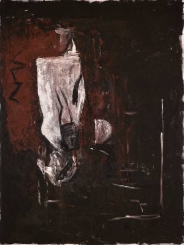 Layers of dark paint create an expressive surface from which an inverted, white figure emerges. Georg Baselitz based the figure on a photograph published in the journal Stern (German for “star”) in 1979 depicting a Russian woman in Germany after World War II. She supervised German women tasked with cleaning up ruined cities. This painting recalls shared memories of Germans who had to construct new lives in the aftermath of the atrocities of the Holocaust and the end of a war that left poverty and destruction in its wake.