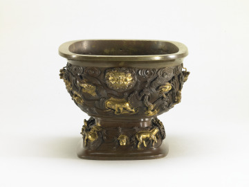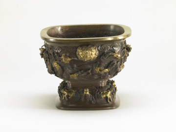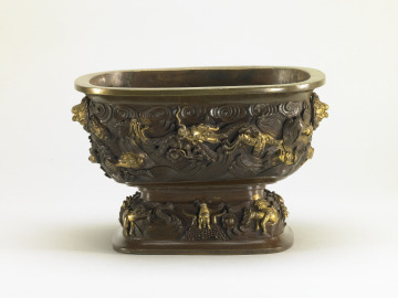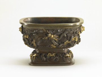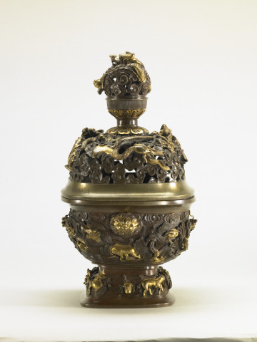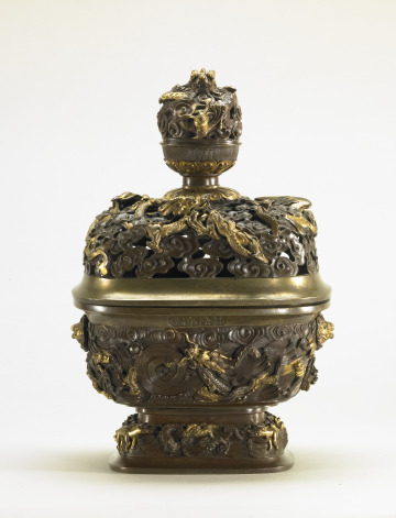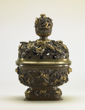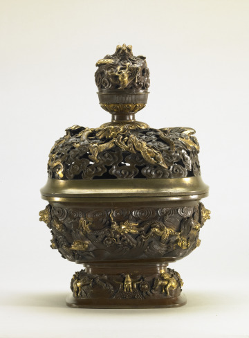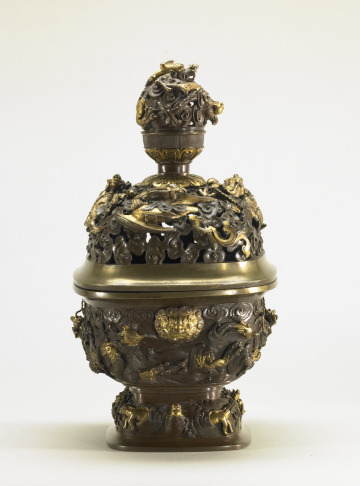 Covered Censer with Design of Dragons and Phoenixes in Clouds and Sea Creatures in Waves