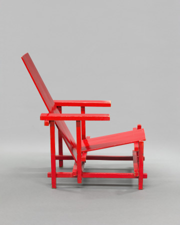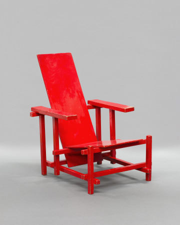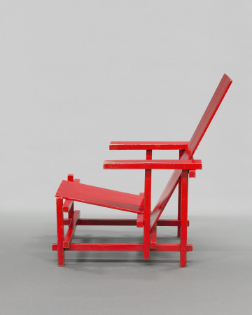 [1] The 1988 auction catalogue notes the chair was made in Rietveld's workshop for his own use and was part of the Rietveld interior at the Vreeburg, in Utrecht, The Netherlands.; Rietveld's daughter inherited the chair in 1964 ["Rietveld and the Rietveld Academy," Christie's, Amsterdam, June 7, 1988, lot no. 423, p. 90-91].