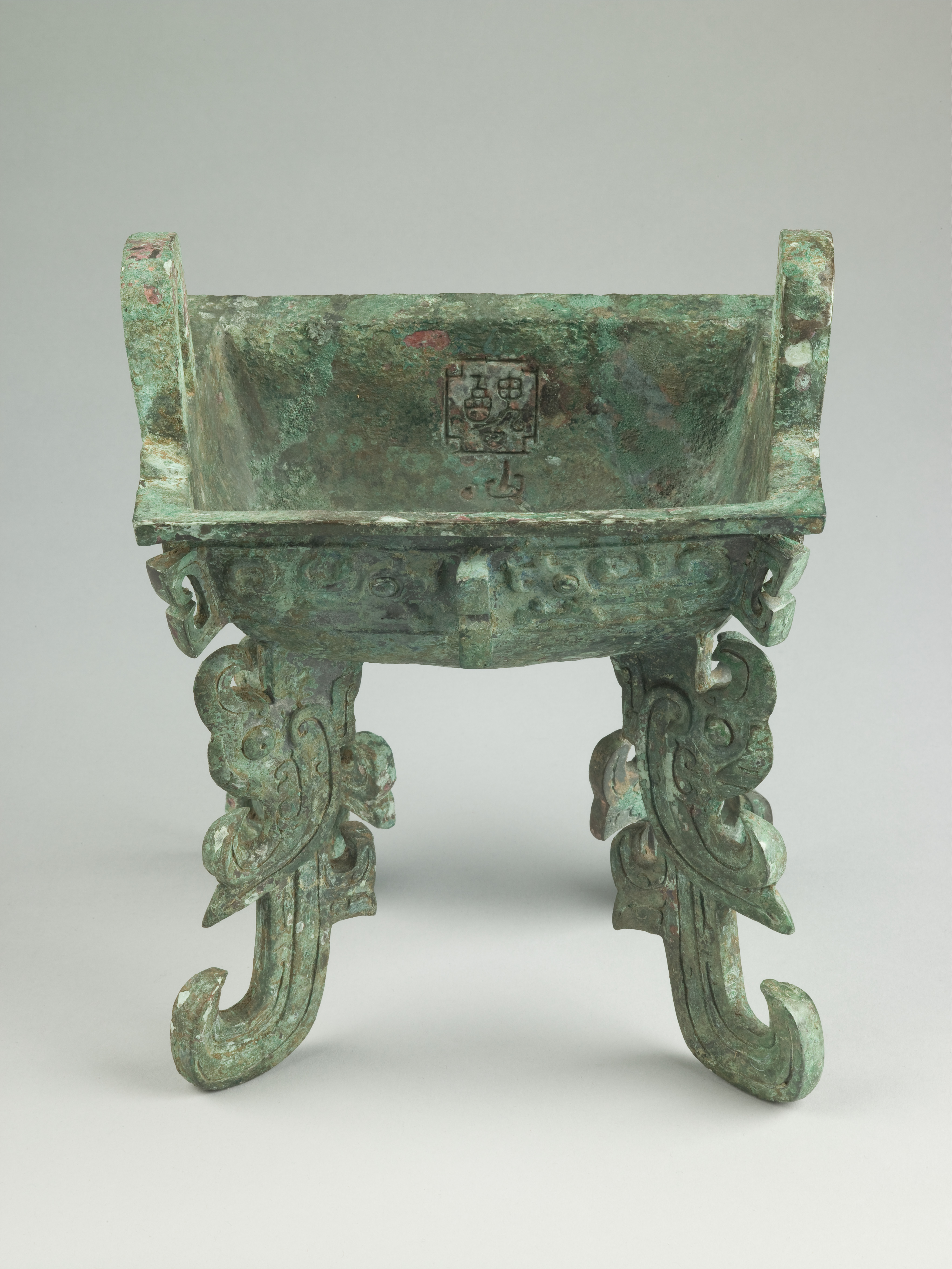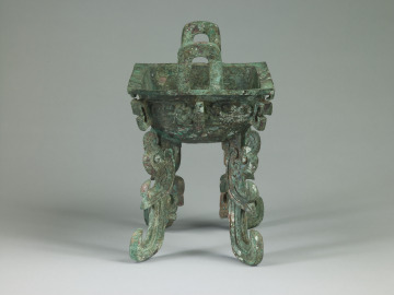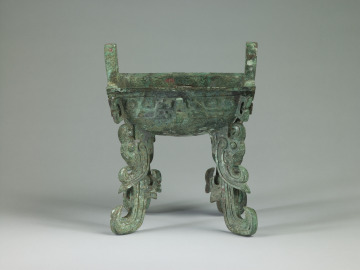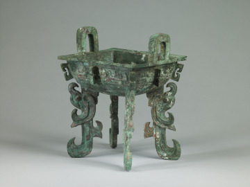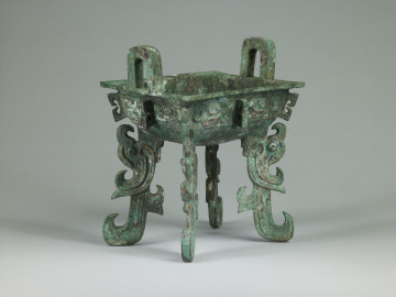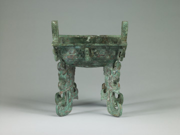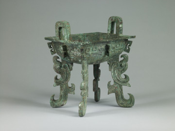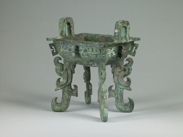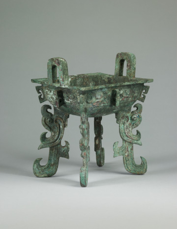 Rectangular Food Vessel (fang ding) with Flattened Feet in the Form of Kui-Dragons