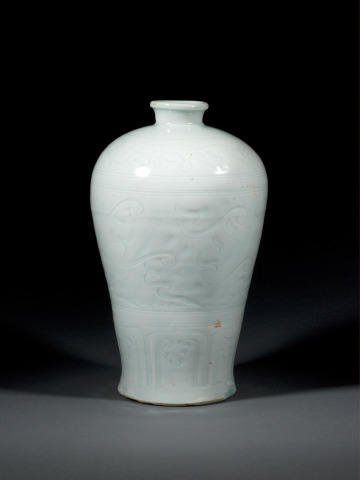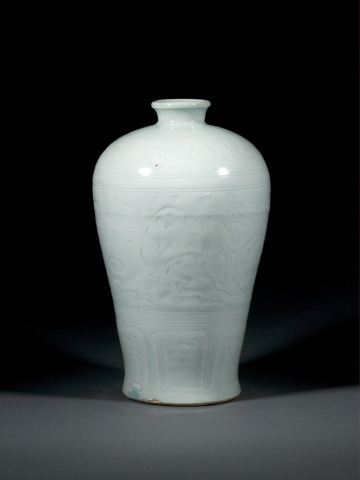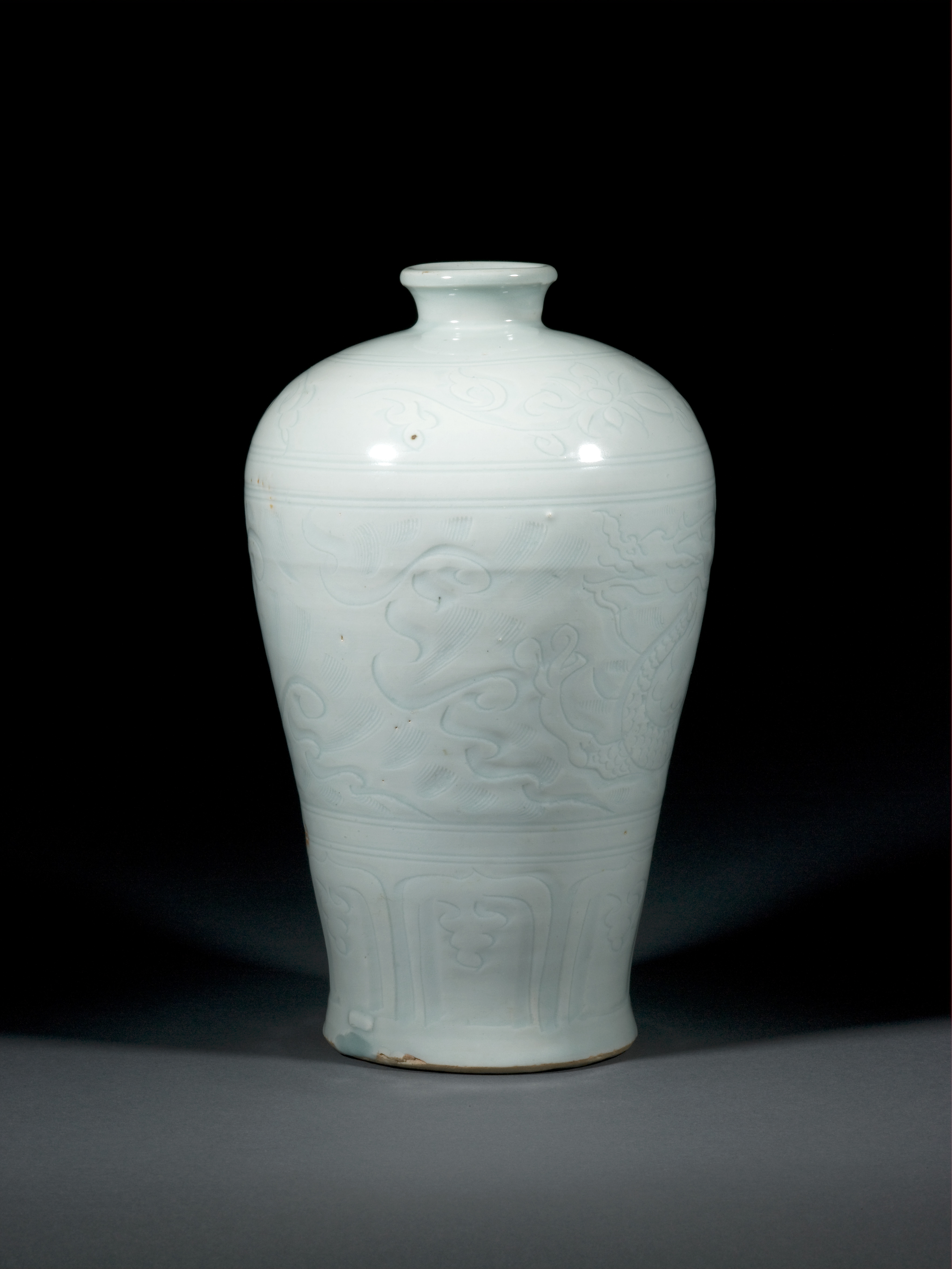 Prunus Vase (meiping) with Design of Dragon amidst Waves, Lotus Scrolls, and Lotus Lappets