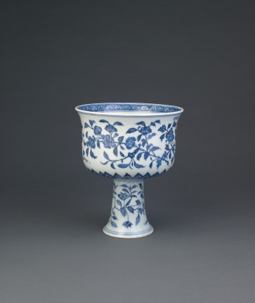 Stem Bowl with Design of Flowering Branches of Tree Peony, Pomegranate, Chrysanthemum, and Camellia