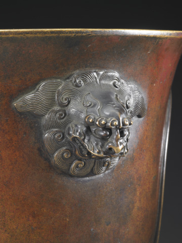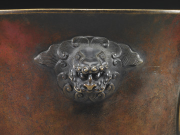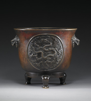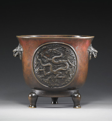 Tripod Vessel with Design of Two Roundels with Dragons and Lion-Headed Handles