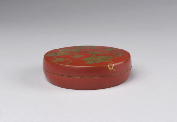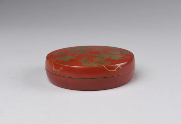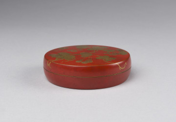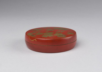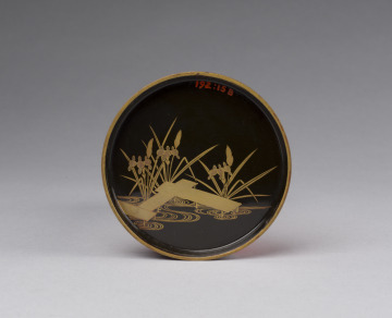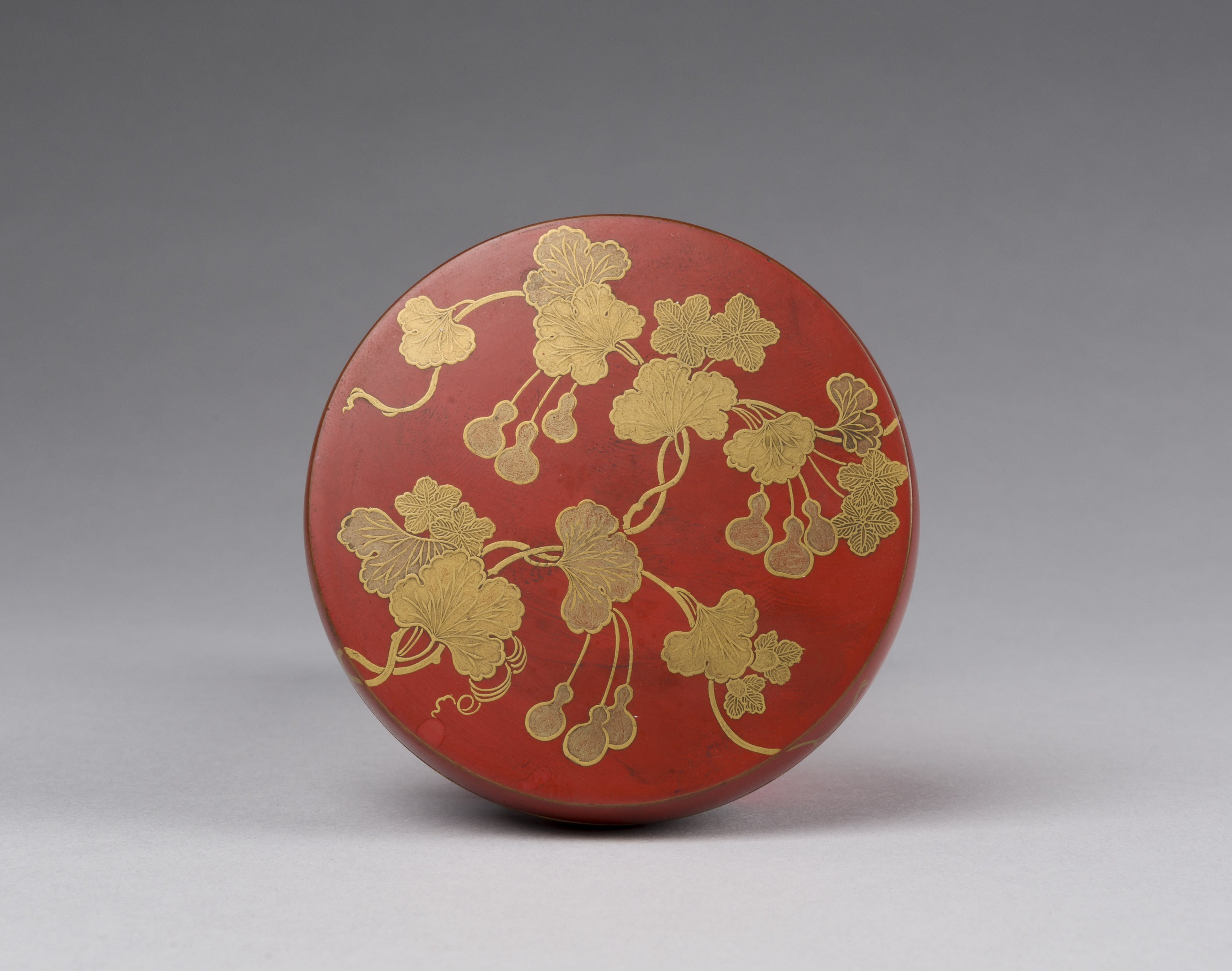 Covered Circular Incense Box (marukōgō) with Exterior Design of Gourd Vines and Interior Design of Irises by an Eight-Fold Bridge