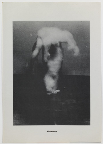 This is one of the images from Sigmar Polke's "Higher Beings Ordain…" portfolio, a work in which the artist appropriates the format of scientific portfolios in its typography, staged photographs, and table of contents. The portfolio begins with a group of photographs in which Polke manipulated common household objects into the shape of a palm tree. In doing so, he mocked the postwar German middle-class taste for these exotic house plants during the 1950s and 60s. The artist then added four drawings to each portfolio so that each is simultaneously the same since it is one of 50, but also unique because of the added drawings.
