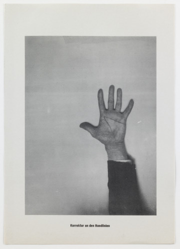 This is one of the images from Sigmar Polke's "Higher Beings Ordain…" portfolio, a work in which the artist appropriates the format of scientific portfolios in its typography, staged photographs, and table of contents. The portfolio begins with a group of photographs in which Polke manipulated common household objects into the shape of a palm tree. In doing so, he mocked the postwar German middle-class taste for these exotic house plants during the 1950s and 60s. The artist then added four drawings to each portfolio so that each is simultaneously the same since it is one of 50, but also unique because of the added drawings.