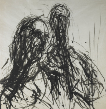 A multitude of lines form a memorable portrait of two friends whose features are barely discernable through the clusters of brushstrokes. The artist Max Uhlig strives to express the sitters' interpersonal feelings and conflicts rather than depicting their actual appearances. He creates such works by intensely observing his subjects and using a Chinese brush which has a finer tip and is very suitable for producing line variations. Uhlig was trained in Dresden and worked in East Germany until reunification in 1989.