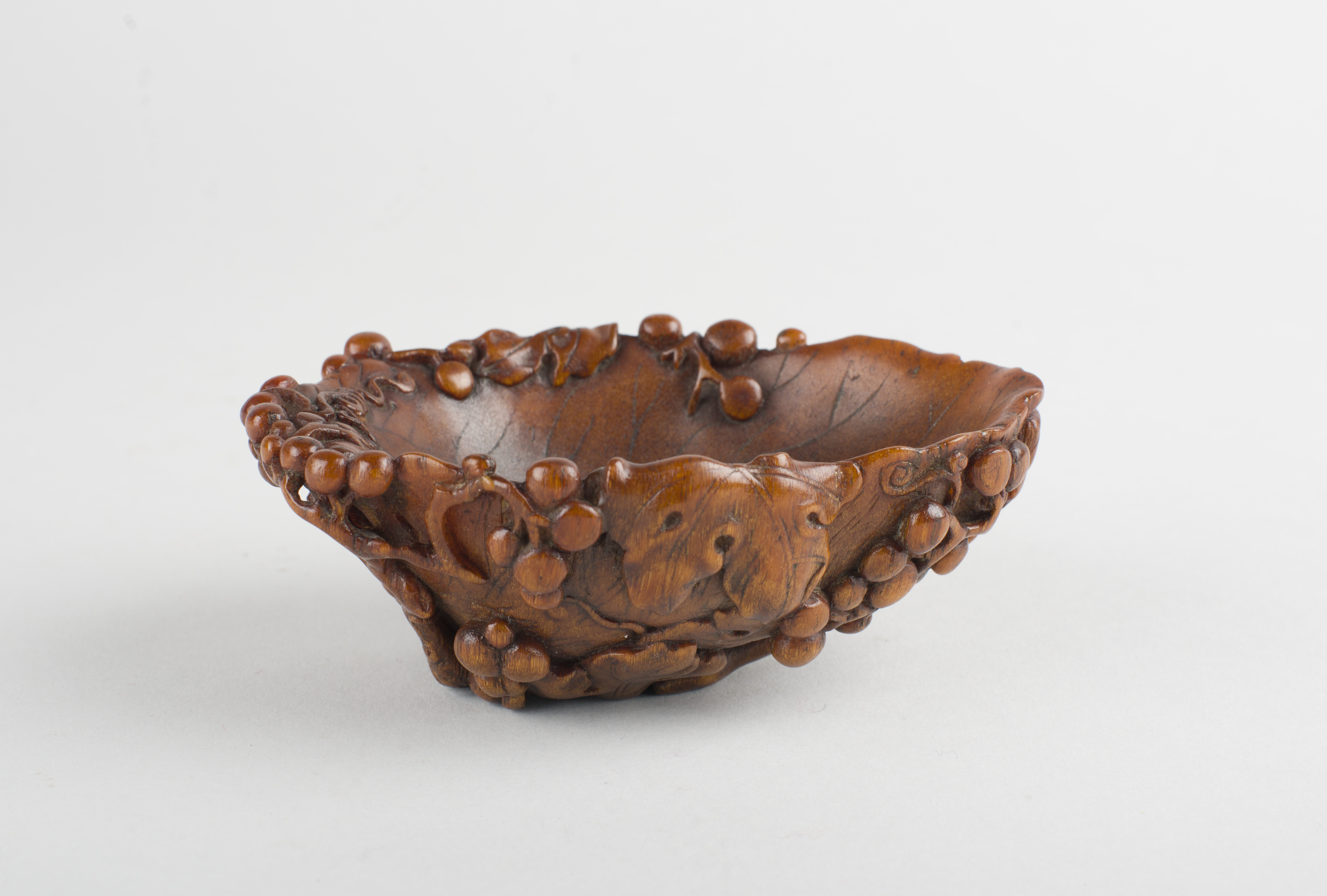 Cup in the Form of a Furled Grape Leaf with Design of Grapes on a Grapevine