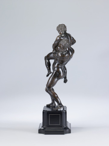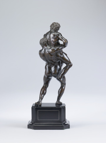 This sculpture invites the viewer to walk around and see it from different perspectives, typical of the way in which 16th-century artists conceived their sculptural work. This bronze version represents an artist’s attempt to recreate a famous older example that was in fragments until 1564. This bronze may have been made as a guide to help reassemble the pieces of the earlier ancient marble version during restoration. For the private collector who first owned the bronze, this sculpture served as a copy of a famous antique.