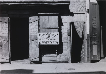 This image depicts a Creole cottage in the New Orleans French Quarter—a building type that was common along the Gulf Coast in the late 18th and early 19th centuries. Though based in New York, Ralston Crawford spent a great deal of time in New Orleans photographing its distinctive architecture. In his focus on the dilapidated facade seen here, Crawford created a tightly knit composition; the deep shadows from the midday sun animate the scene. They produce rhythms of surface and void—rhythms that he regarded as visual counterparts to the improvisational jazz music in New Orleans that he admired.