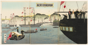 The Imperial Party Departing from Hiroshima on a Tour of the Port of Kure