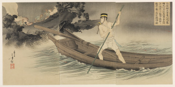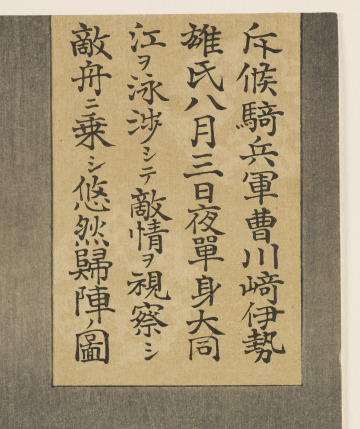 On the Evening of August 3, Cavalry Scout Sergeant Kawasaki Iseo Swam Alone across the Daedong River to Observe Enemy Movements, and Using an Enemy Boat He Calmly Returned to the Encampment