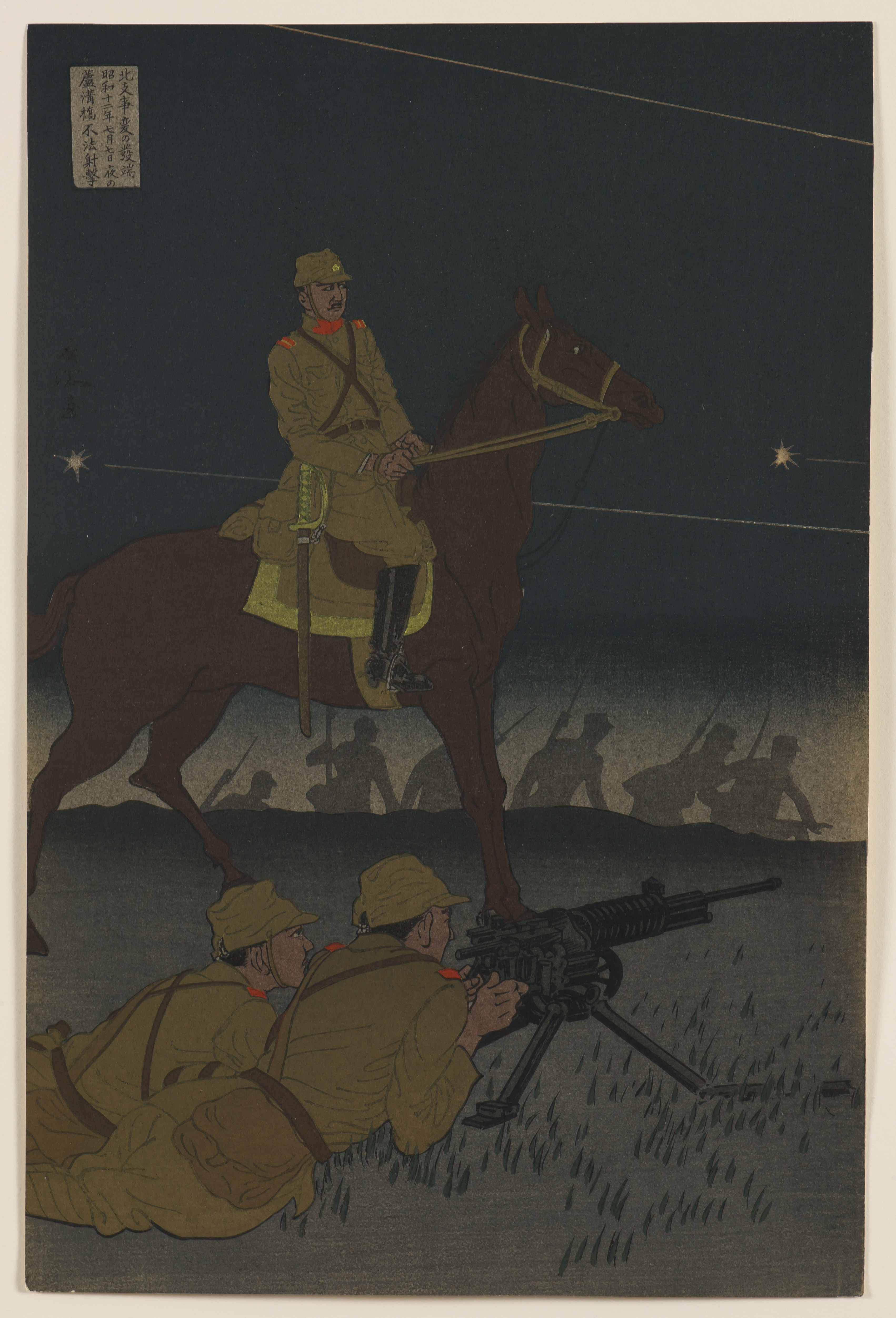 Origins of the North China Incident: Illegal Shots are Fired at Marco Polo Bridge during the Night of July 7, from the series Sino-Japanese Incident: Illustrated Report of the Nation-in-Arms: First Series