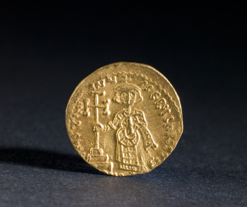 This imagery represents the first time in the history of the Byzantine Empire that Jesus Christ appears as the preeminent image on coinage, with the emperor relegated to subservient status on the back.