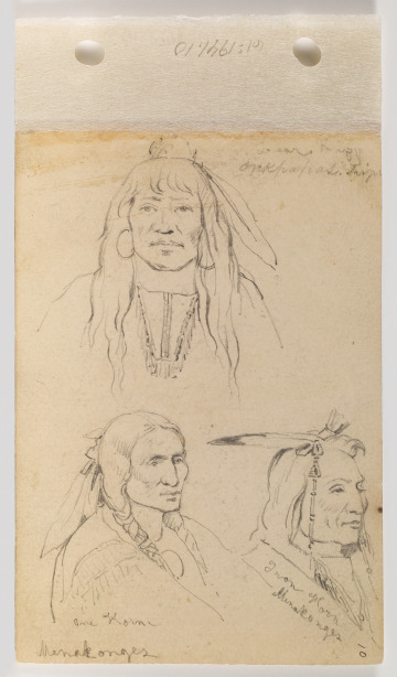 Portraits of Mato Chuthuhu (Bear’s Rib), Ha won je tah (One Horn/Lone Horn), and Heh Mah Zah (Iron Horn) (leaf 10 recto)