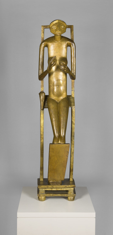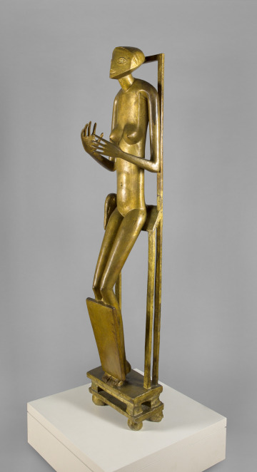 Gazing into the distance with mouth open in wonder, a female figure leans forward while her long, nervous fingers encircle an empty space. Her vulnerable face evokes a sense of psychological alienation. Alberto Giacometti joined the Surrealist movement in the 1920s. Poet André Breton, leader of the Parisian Surrealists, described this work as “an emanation of the desire to love and be loved in quest of the true human object and in all the agony of its quest.”