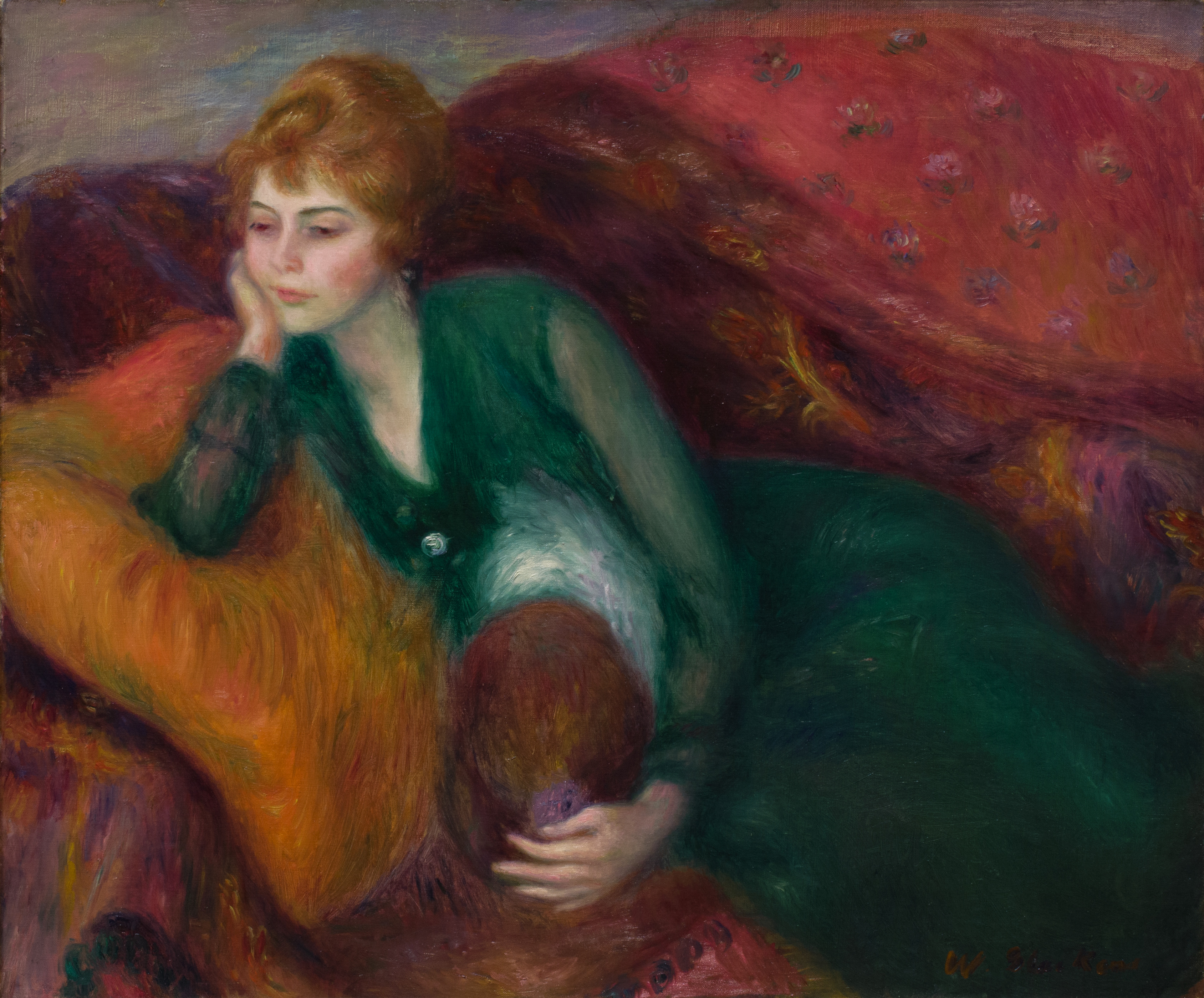 William Glackens made a number of paintings that focus on a single female model, with titles that refer to a formal element, such as a color in this example. In this way, the artist reinforces the poetic quality of the subject.