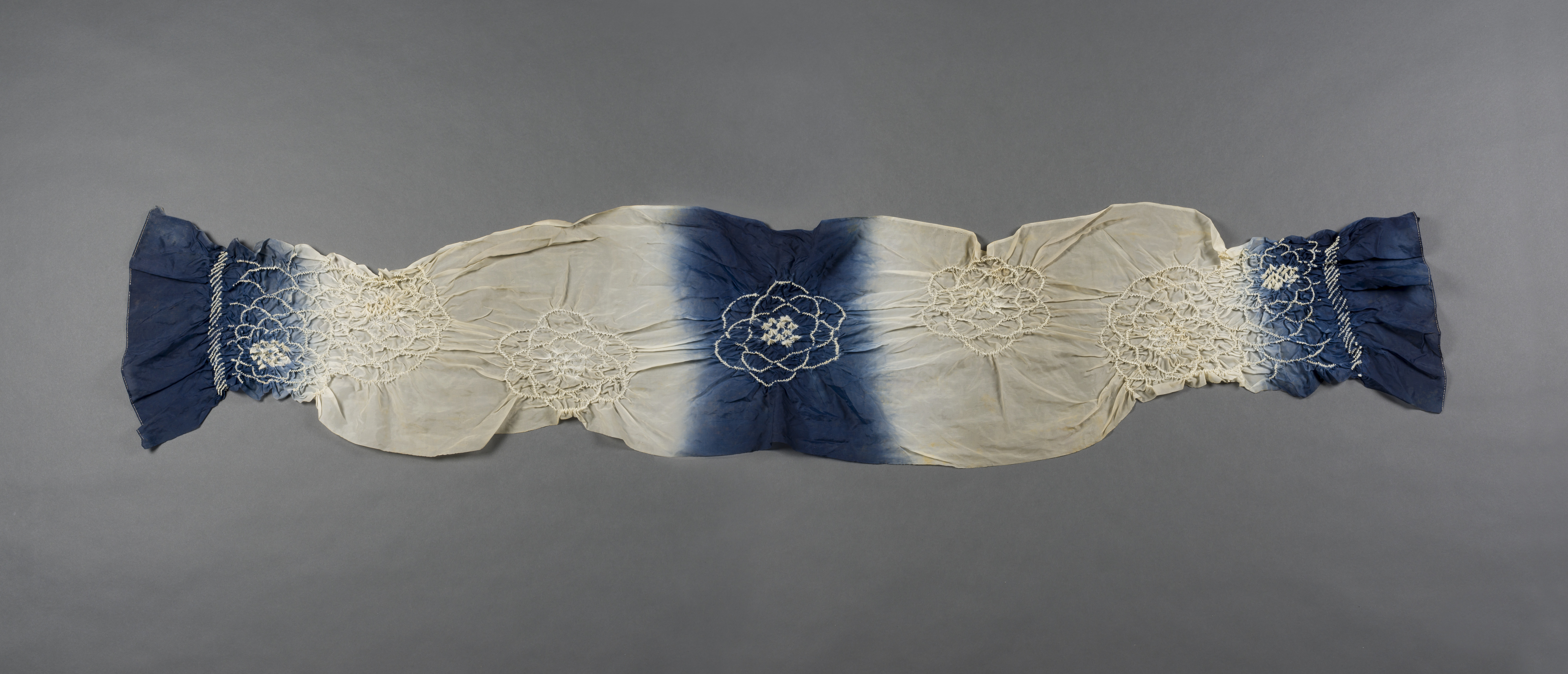 Woman’s Summer Kimono Obi Sash (obiage) with Design of Floral Motifs on Blue and White Ground
