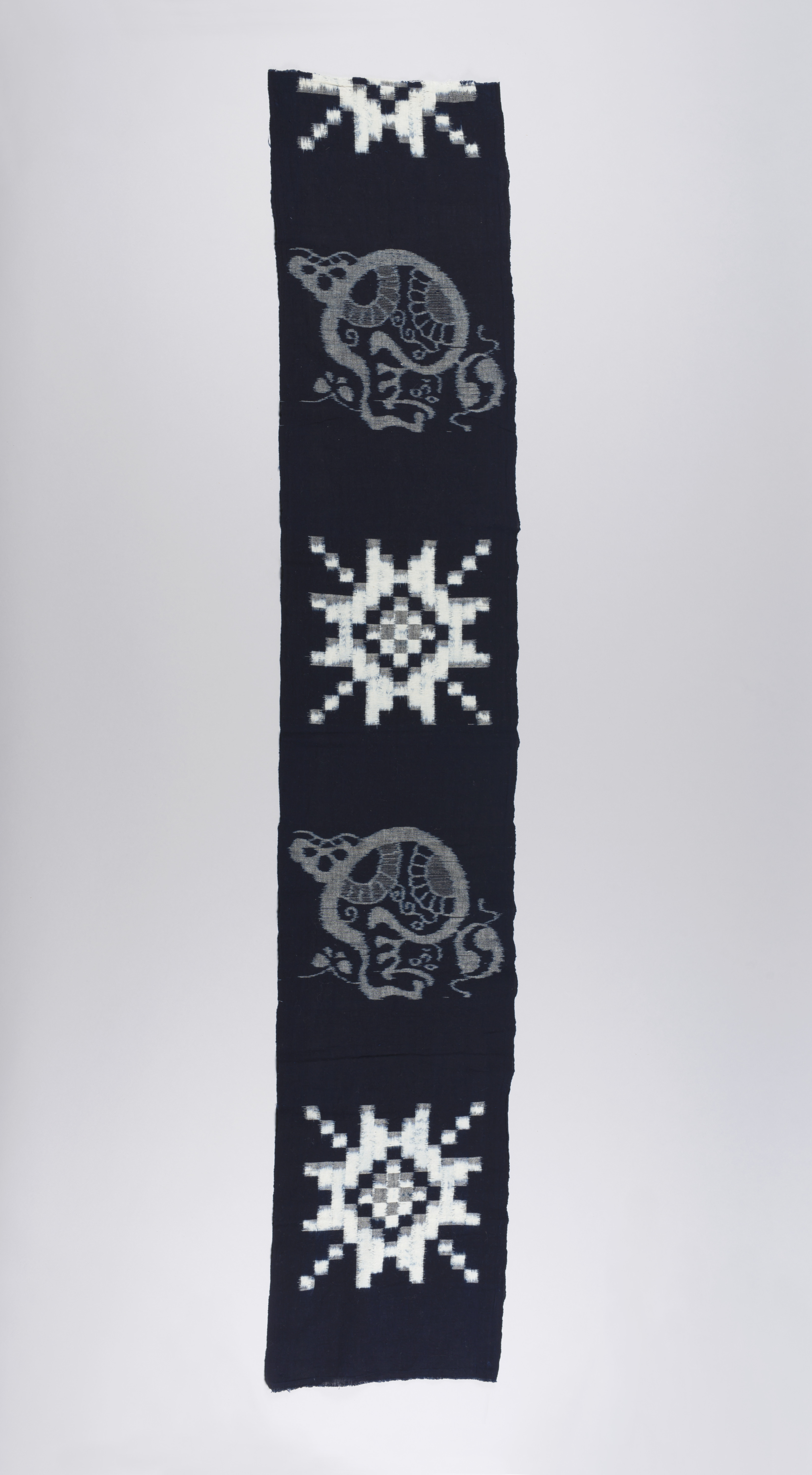 Length of Fabric with Design of Daruma with a Butterfly, Toy Drum, and Pine Tree