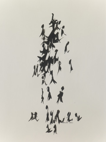 Short, calligraphic brushstrokes appear in this untitled drawing, reflecting the artist’s interest in East Asian scroll painting with a similar long, vertical format. Norman Lewis’ quick, gestural marks also suggest dispersing figures, like people on a crowded street. After producing artworks for the Work Projects Administration (WPA), a government-sponsored program that provided jobs for Americans during the Great Depression, Lewis migrated away from a representational style. He was among the first African American artists to be associated with Abstract Expressionism, although in early works such as this one, his abstractions still allude to the figure.