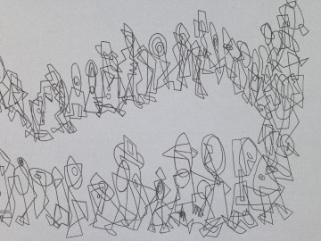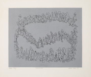 Overlapping shapes, suggestive of human forms, encircle and transverse the gray ground in Togetherness. Norman Lewis, a friend of Romare Bearden, was primarily an abstract artist. Equally interested in the question of art’s place in the civil rights movement, Lewis and Bearden, along with a few others, founded the artists’ group, Spiral (1963–65). Though short-lived, the collective was an incubator for collaboration. In 1969, the pair, along with Ernest Crichlow (1914–2009), opened Cinque Gallery in New York, a space that exhibited work by African American artists and hosted educational programs.