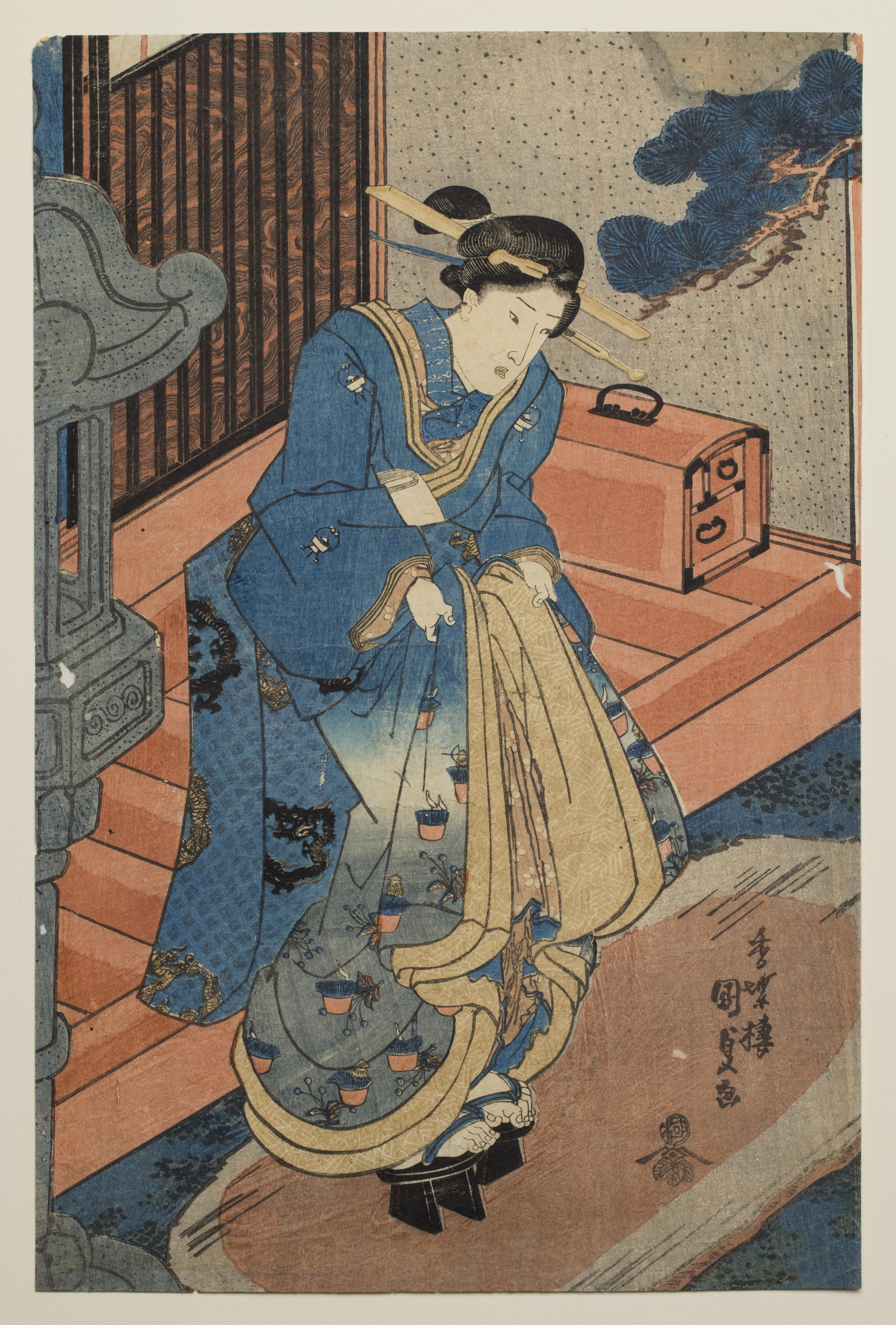 Leaving the Shrine at Naka-chō, left-hand sheet of a triptych from the series “Comparison of Fashionable Beauties: Three Women on a Shrine Visit”