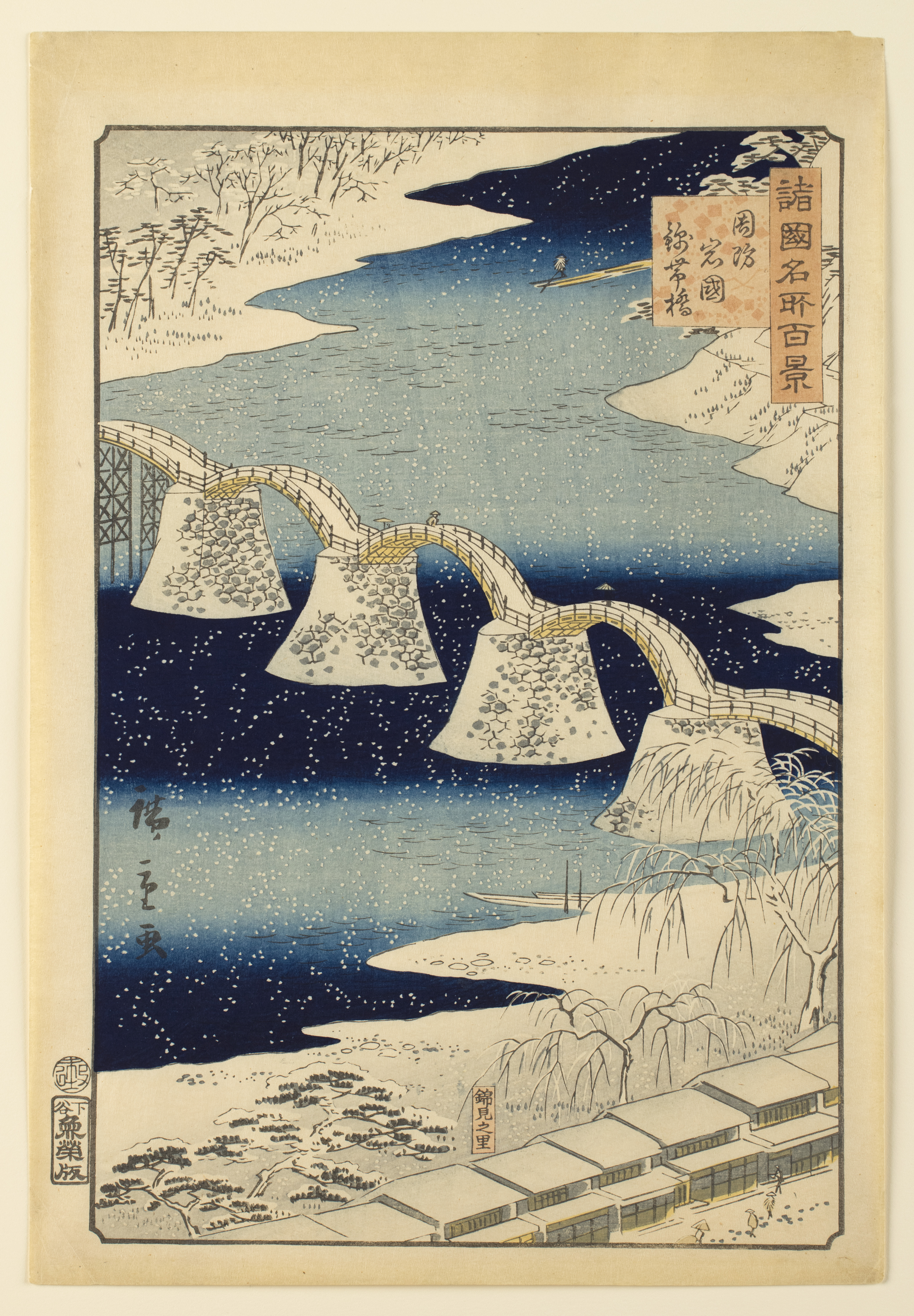 Kintai Bridge at Iwakuni in Suō Province, from the series “One Hundred Famous Views in the Various Provinces”