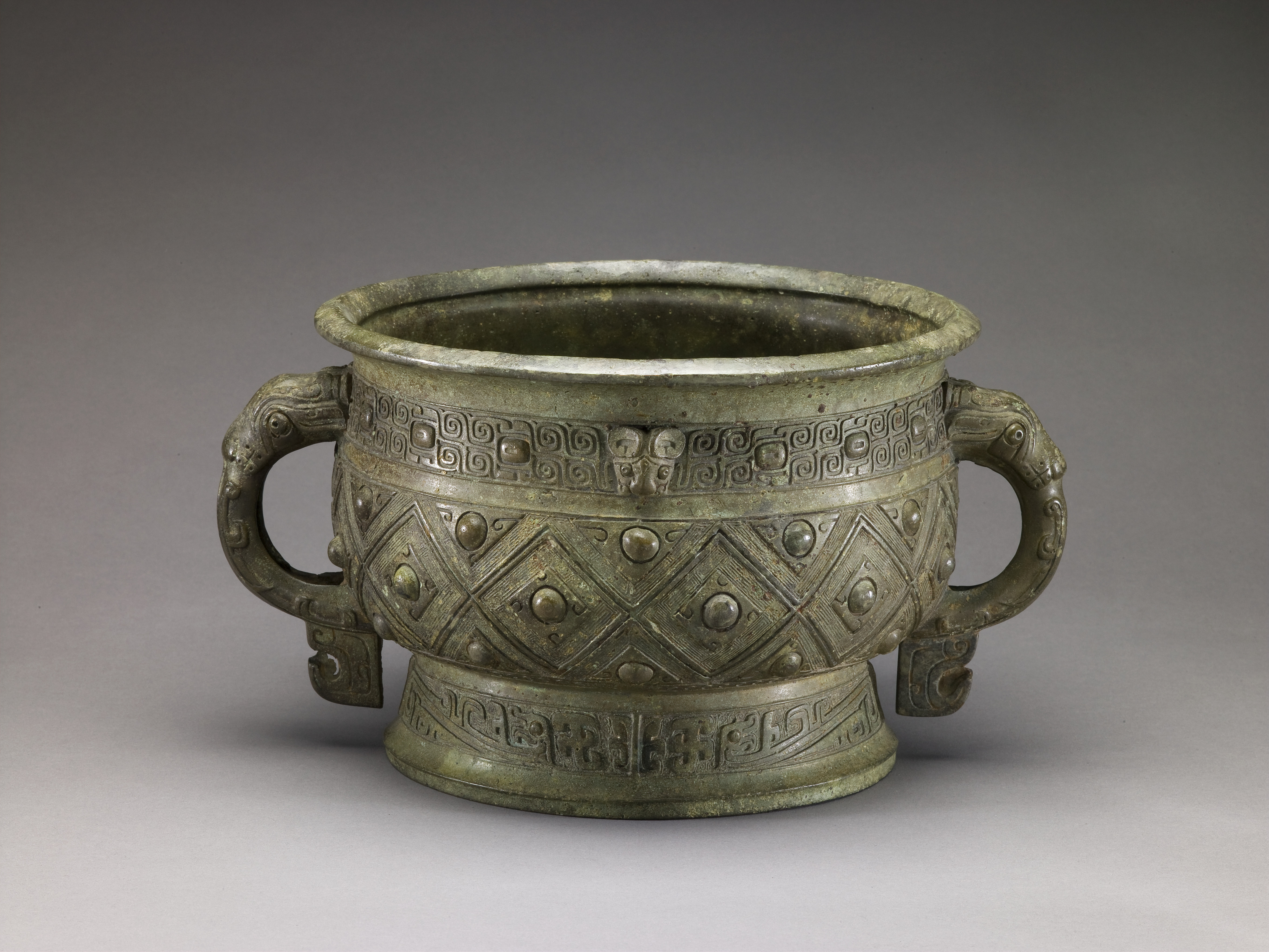 Grain Vessel (gui) with Design of Zoomorphic Masks, Kui-Dragons, Diamonds and Bosses, and Animal-Headed Handles