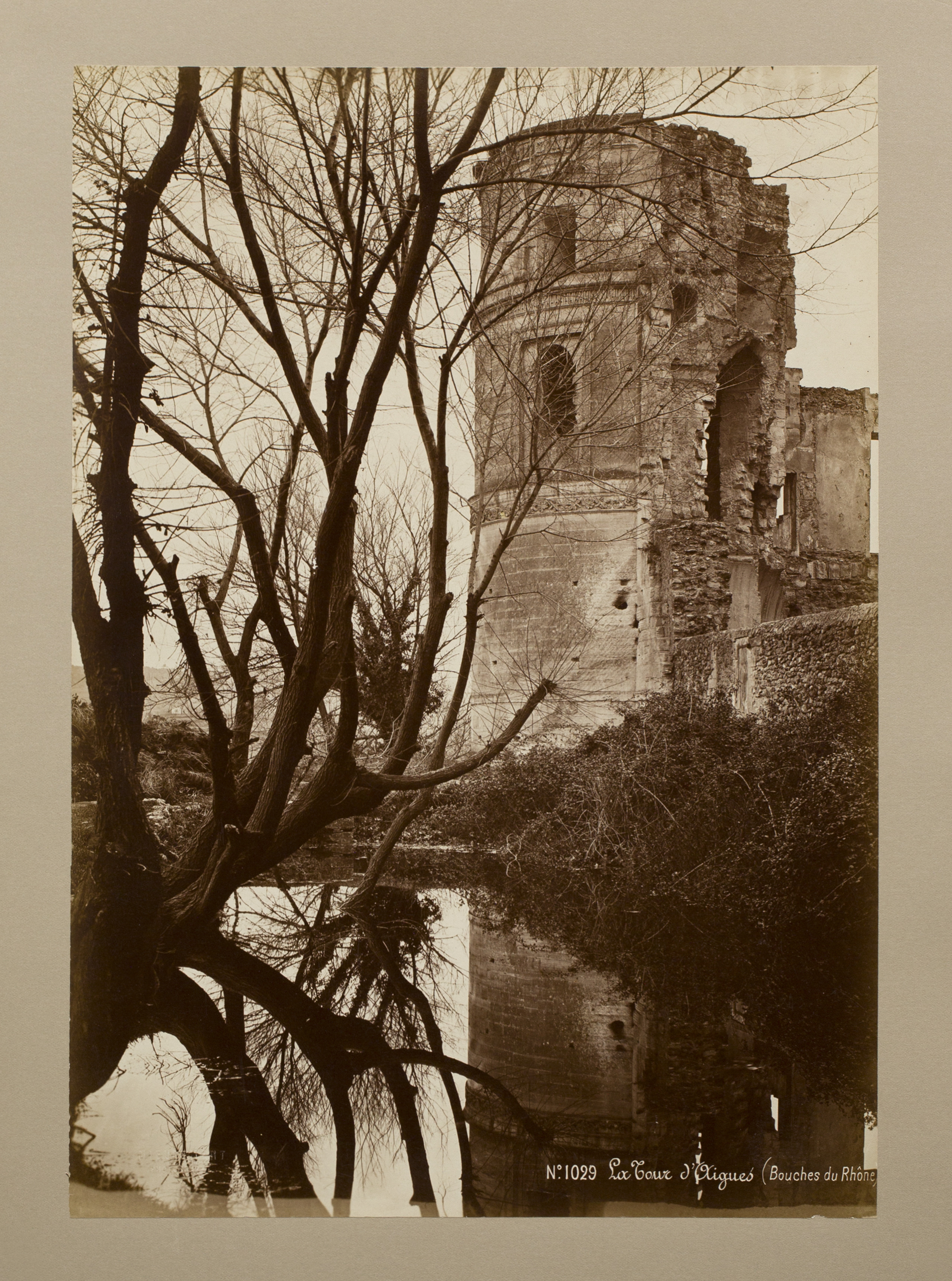 In this image, Séraphin Médéric Mieusement focused on remains of the one of the corner towers of a 15th-century castle, which was part of the larger château. Using the branches of a barren tree in the foreground, as well as reflections in the water, he created a complex and compelling composition. Mieusement specialized in photographing historic monuments in France in the 1870s and 1880s, continuing the efforts of the Historical Monuments Commission to survey important buildings as aids in restoration.