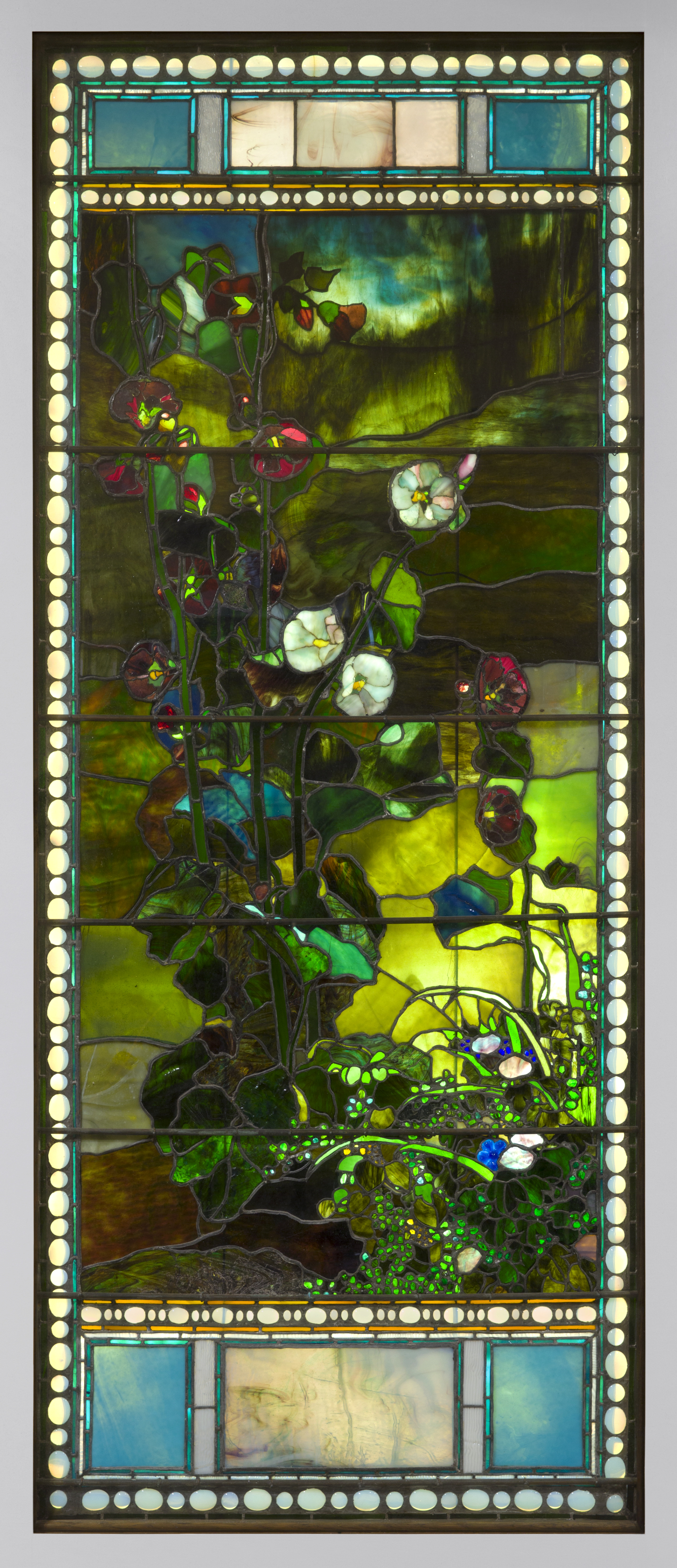 Hollyhocks, window from the Frederick Lothrop Ames House, Boston, Massachusetts