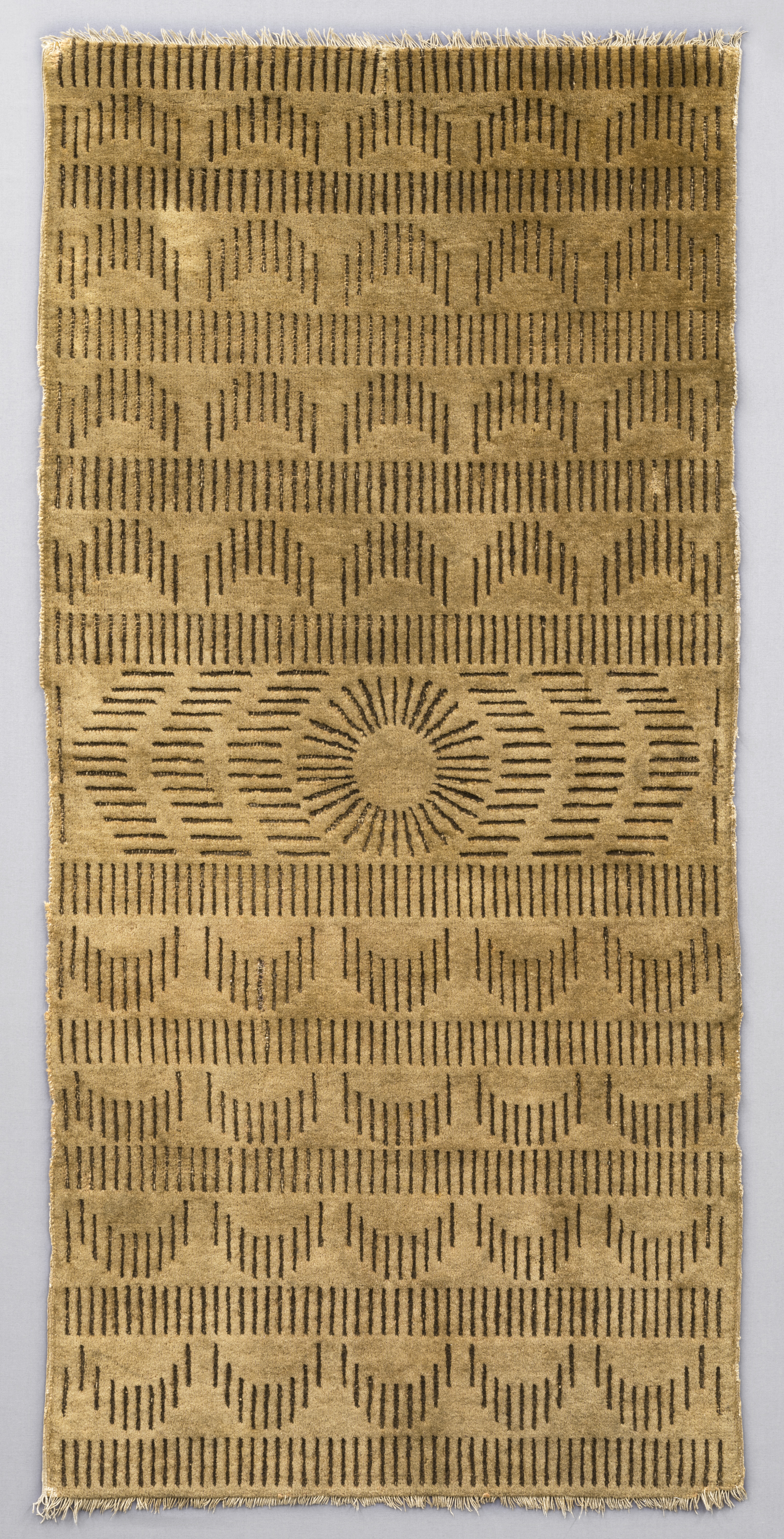 Muslim weavers in the Ningxia Hui autonomous region of northwestern China created this rare and unusual rug. Rugs of this type share a number of visual characteristics: the “stroke and dash” pattern, a central medallion, and a distinctive lack of conventional borders.