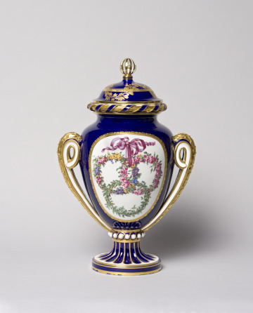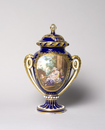 This vase is one of a set along with a pair of vases (80:2000.1, .2) that shares the same provenance. The primary source for this provenance is an article entitled "Une Exceptionelle Garniture de Sèvres" by Vincent Bastien, independent scholar, Paris, France, in the journal L'Estampille/L'Object d'Art, 462 (2010): 54-5.