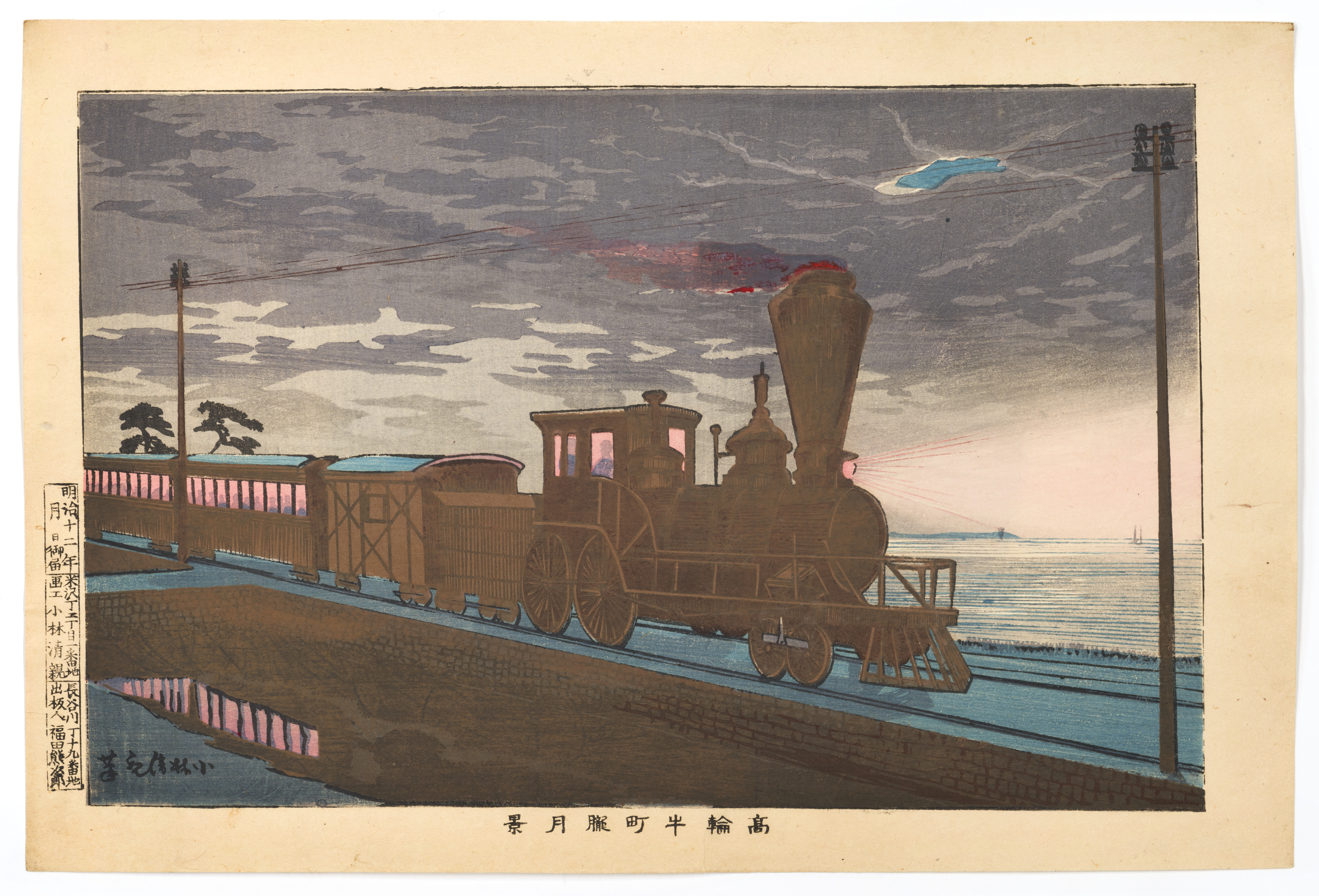 View of Ushimachi in Takanawa in Early Evening under a Hazy Moon