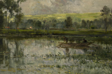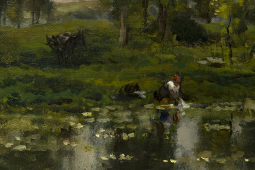 [1] A 1917 auction catalogue indicates that this painting, titled "The Edge of the Pond", came from Goupil & Co. and George Petit Galleries, Paris, by order of Mrs. Harold Thorne, daughter of the late H.S. Wilson ["Highly Valuable Modern Paintings," The American Art Association, New York, January 16-17, 1917, lot no. 121].