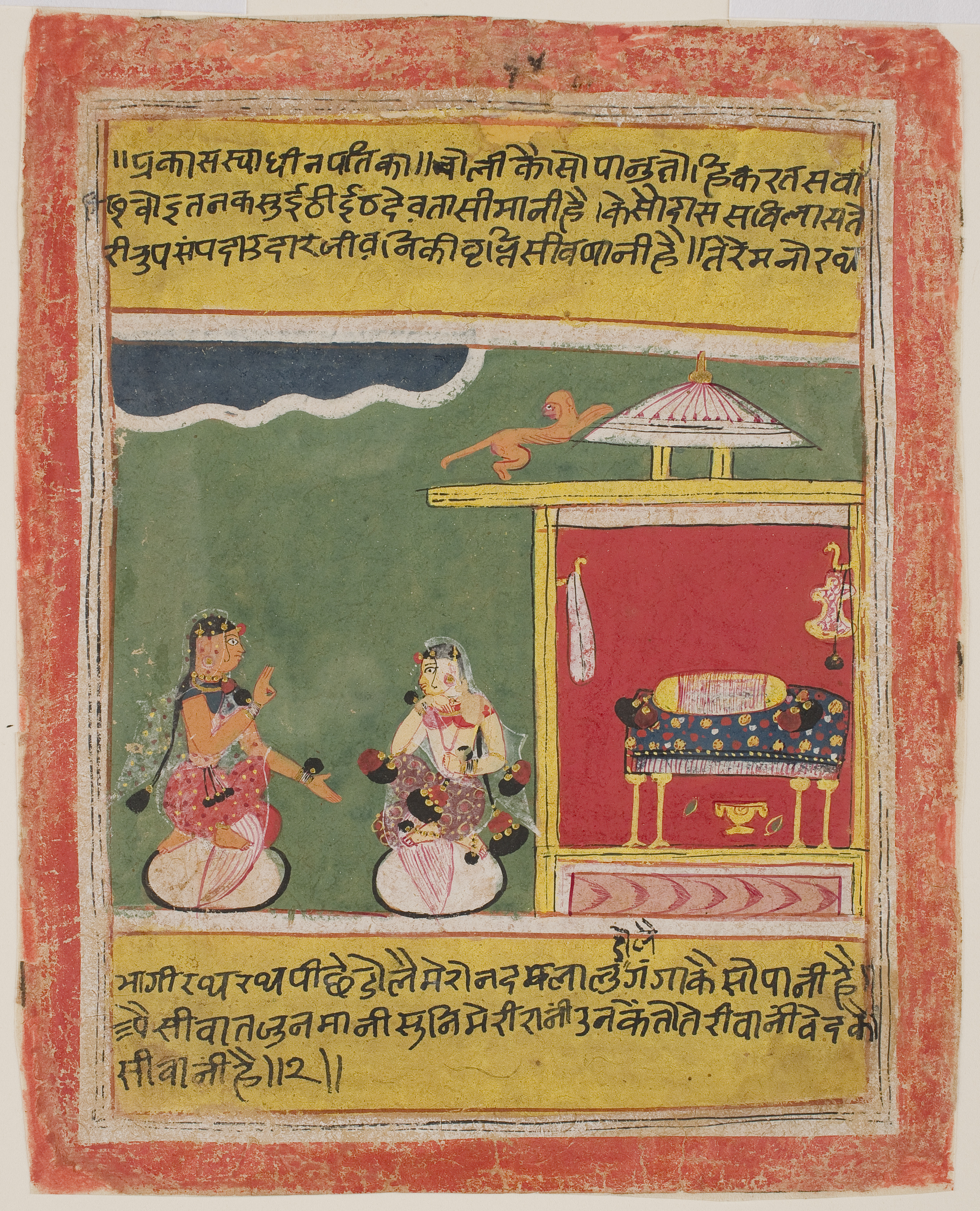 Radha Speaks with Her Confidante (A Nayaka), from the Dispersed Orchha Rasikapriyā
