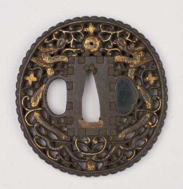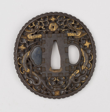 Sword Guard (tsuba) with Design of Two Dragons Confronting a Pearl