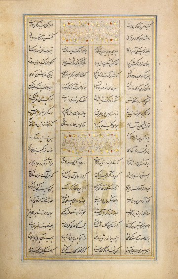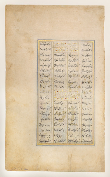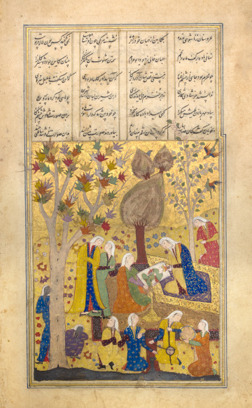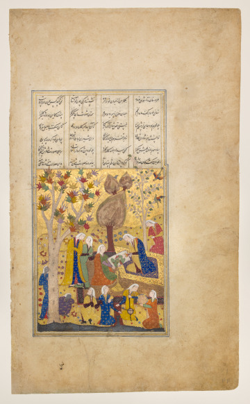 Shīrīn Holding the Portrait of Khusraw while Being Watched by Shāpūr, folio from a manuscript of the Khamsa of Niẓāmī