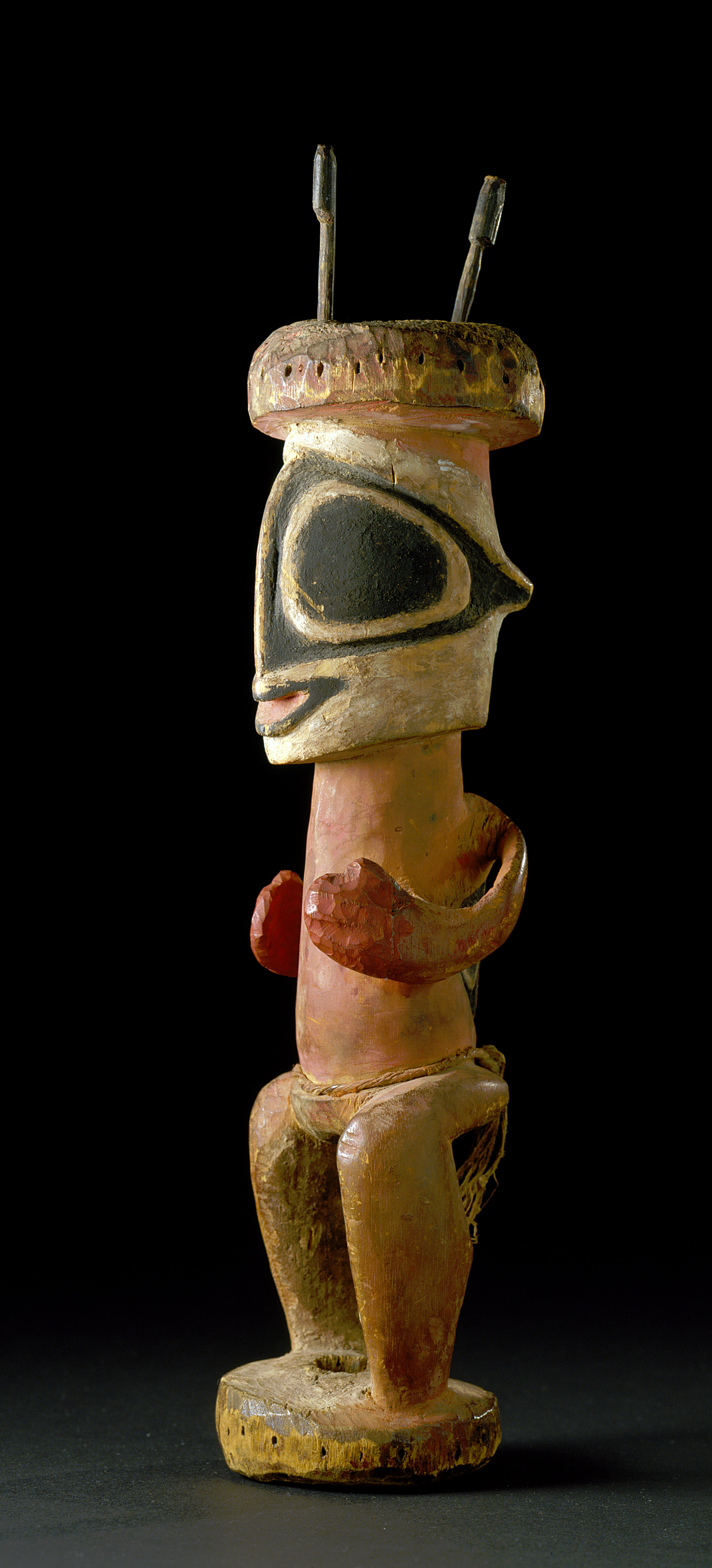 [1] An invoice dated October 29, 1973 from Roberta M. Nochimson Associates to Morton D. May documents the purchase of this object, listed as "Dance Hat / Canoe Prow (?) Praying Mantis Figure" [May Archives, Saint Louis Art Museum].