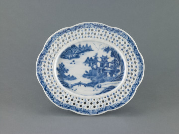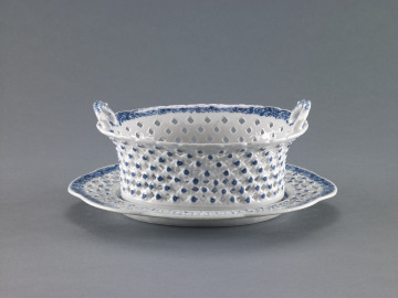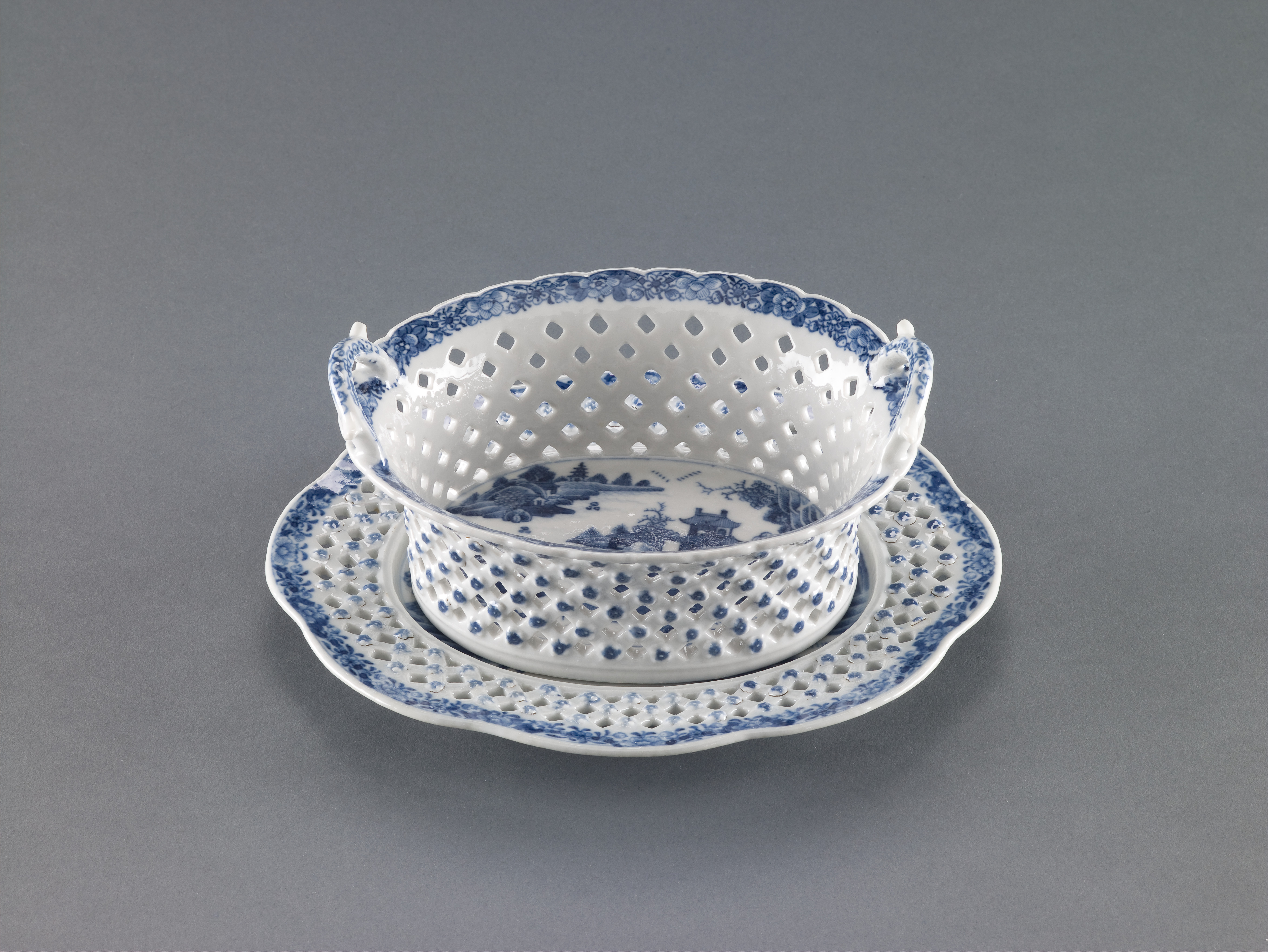 Reticulated Basket and Underplate with Design of Landscape and Floral Motifs in the Royal Worcester Style