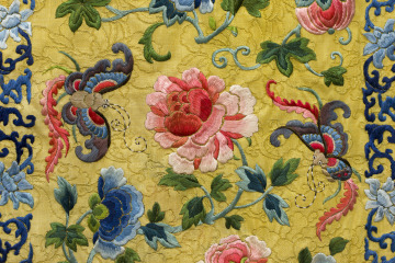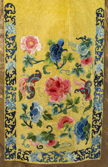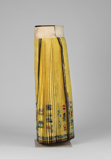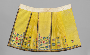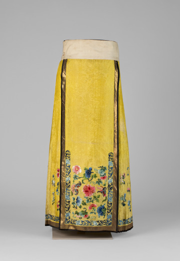 Han Chinese Woman’s Skirt (qun) with Design of Flowers and Butterflies with Stylized Floral Scroll Borders on a Yellow Ground