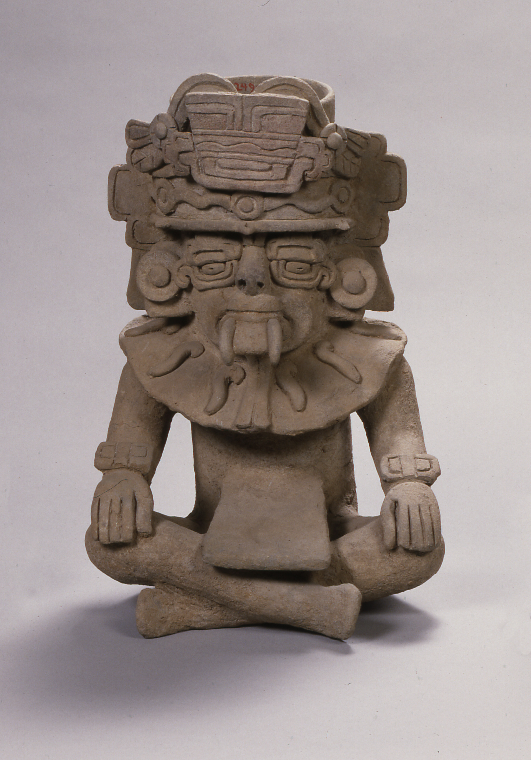 [1] A typed note dated July 11, 1967 identified this object was "today purchased from Mrs. Eugenia Alvarez," listed as "10 Monte Alban urns (Zapotec pieces)." An invoice dated August 7, 1967 from Alvarez to May further documents the purchase, listed as "10 (Ten) Monte Alban I/II urns / Grey terracotta w/ traces of cinnabar." The purchase was for two sets of five matching urns, 249:1978.1-.5 and 250:1978.1-.5 [note and invoice, May Archives, Saint Louis Art Museum].