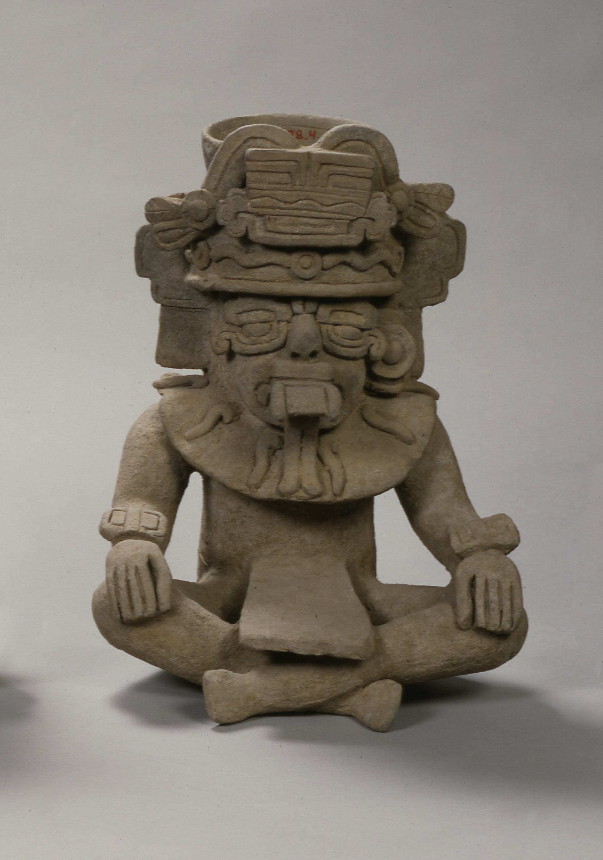[1] A typed note dated July 11, 1967 identified this object was "today purchased from Mrs. Eugenia Alvarez," listed as "10 Monte Alban urns (Zapotec pieces)." An invoice dated August 7, 1967 from Alvarez to May further documents the purchase, listed as "10 (Ten) Monte Alban I/II urns / Grey terracotta w/ traces of cinnabar." The purchase was for two sets of five matching urns, 249:1978.1-.5 and 250:1978.1-.5 [note and invoice, May Archives, Saint Louis Art Museum].
