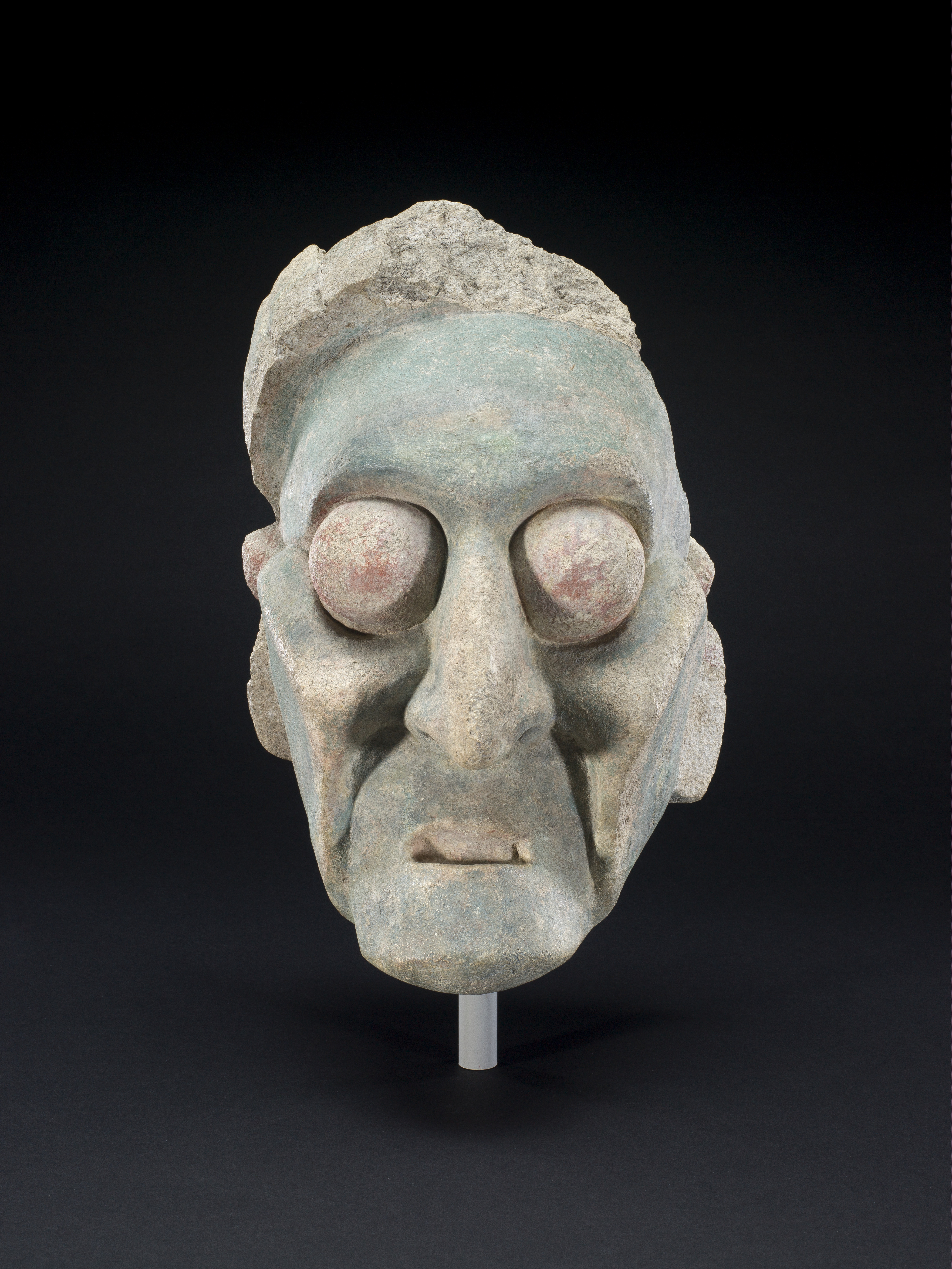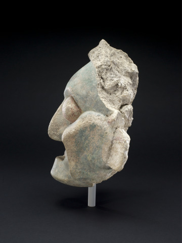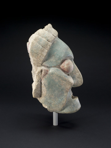 [1] An invoice dated December 22, 1967 from Eugenia Alvarez to Morton D. May documents this purchase, one of three objects listed as "Maya Stucco Head" [May Archives, Saint Louis Art Museum].