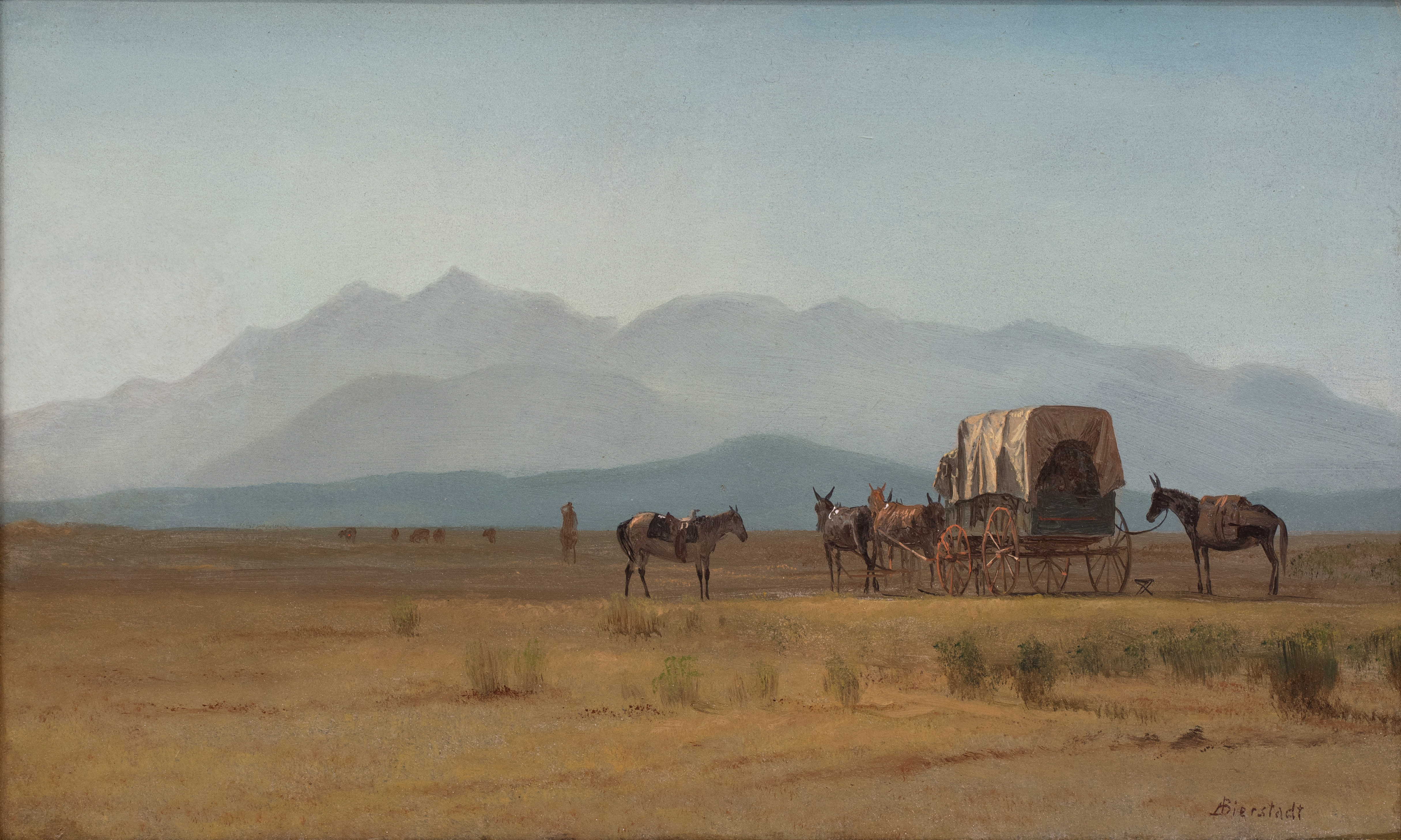 Bierstadt painted Surveyor's Wagon in the Rockies in 1859 while part of a government survey party bound for the Rocky Mountains. Artists like Bierstadt wanted their largely Eastern clientele to know they had actually seen the landscape they painted. Travel through the area was nearly impossible, however, without the provisions and expertise provided by military or government expeditions.