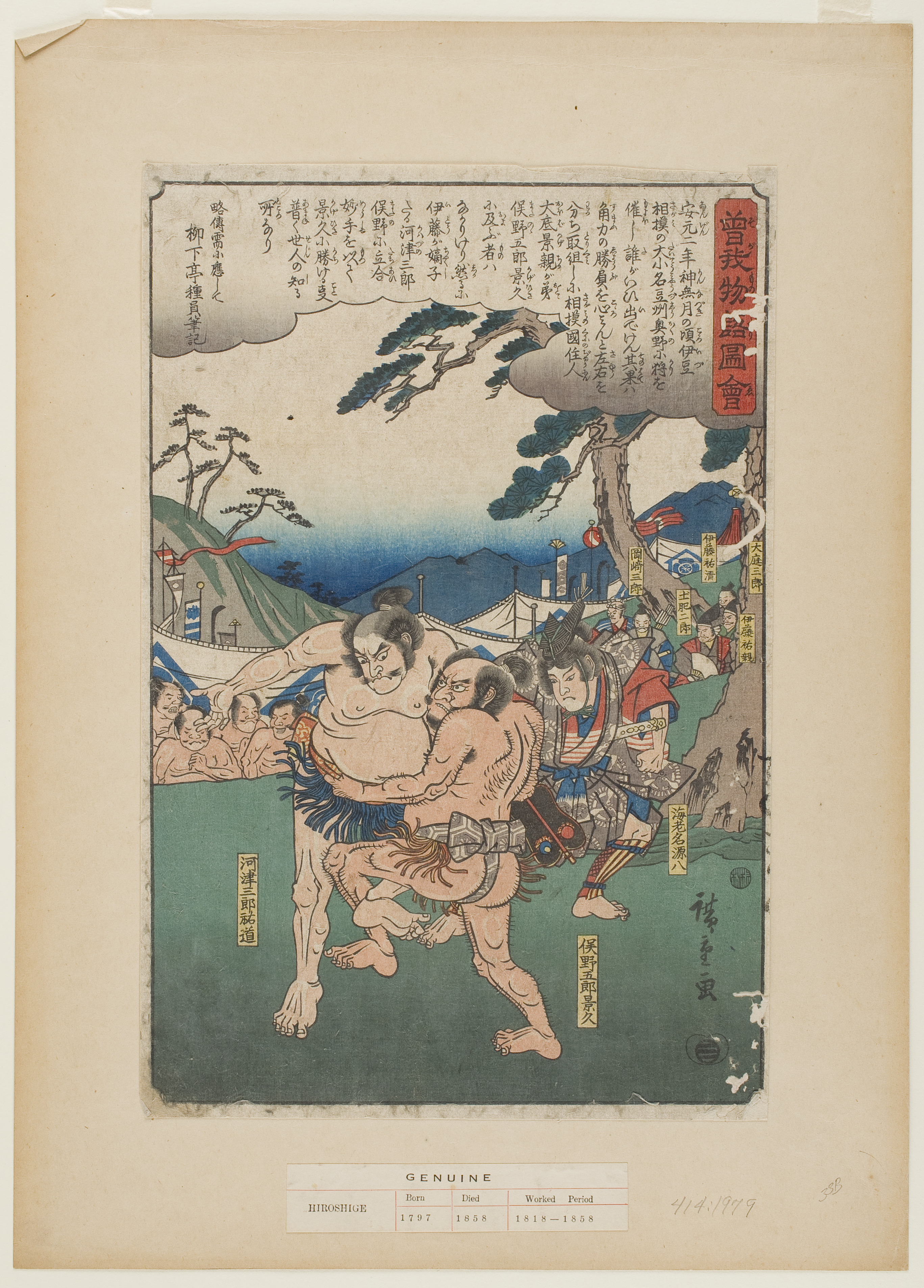 Ebina Genpachi, Matano no Gorō Kagehisa, and Kawazu no Saburō Sukeyasu, from the series “Illustrated Tale of the Soga Brothers”